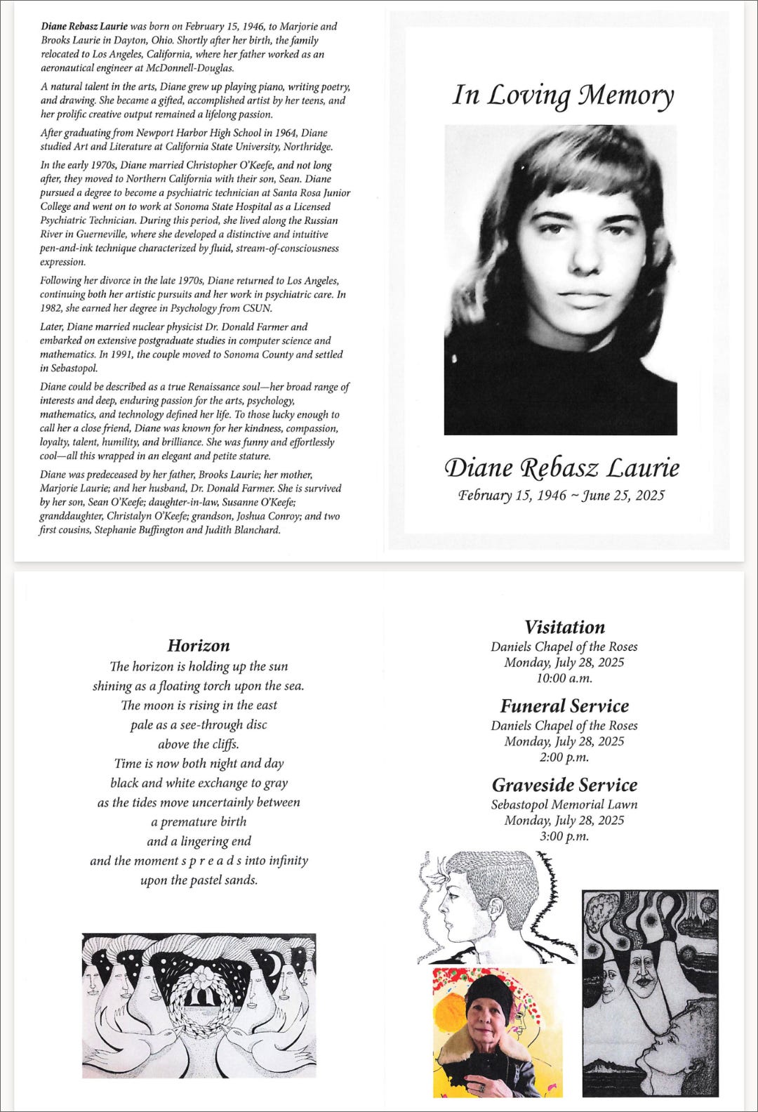 On Monday, July 28, Sebastopol’s Connie Williams and family set off for the funeral of their longtime neighbor and friend Diane Laurie, who had died in a care home at the end of June.