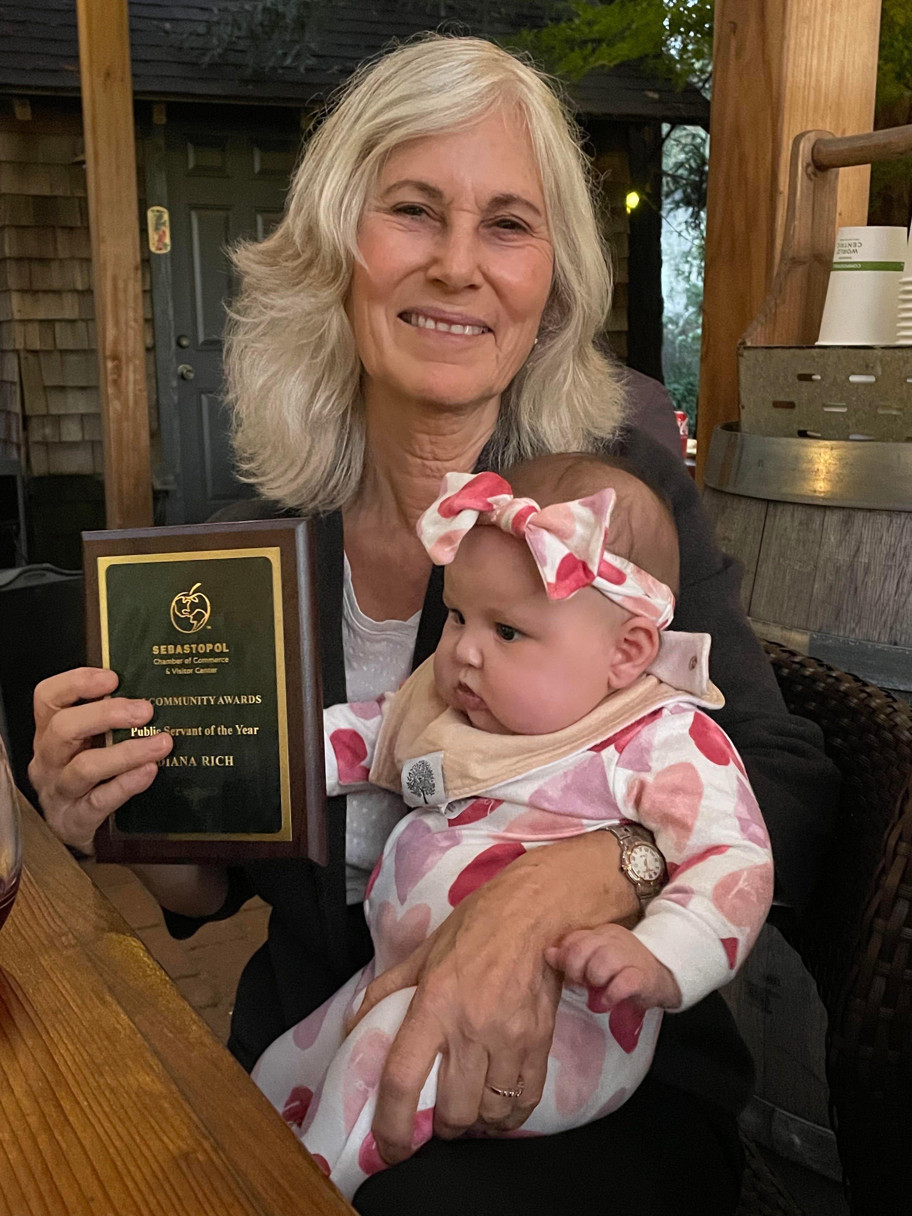 “I love Sebastopol. Everyone knows that about me,” Rich said. “I absolutely love this town. It’s been a pleasure to be contributing to the quality of life here for the last 20 plus years. We’ve raised our kids here, and I got the wonderful, fabulous gift of working with so many of you out here and being part of the life here in our little town. So thank you to everyone who has given me that opportunity and who has made this town so welcoming to me and my family and my grandchild.”
