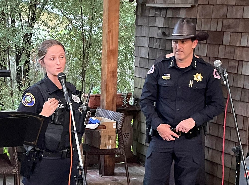 Police Chief Sean McDonagh, wearing his signature cowboy hat, introduced the Police Officer of the Year, Paige Thomas.