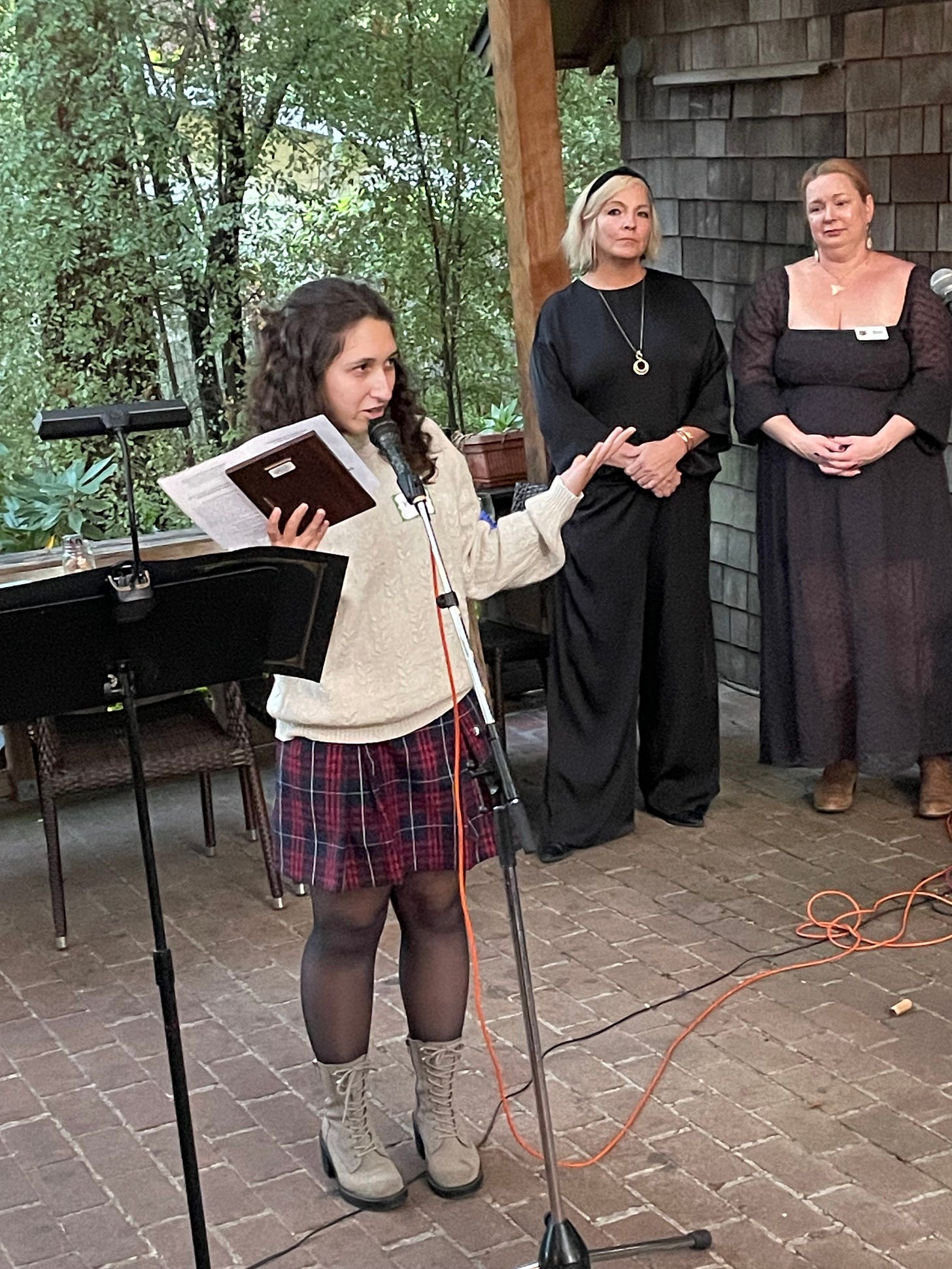 “My country is a beautiful country full of life and love and people with the kindest hearts, but unfortunately, certain problems made it impossible for women to express themselves and be free. Receiving this award really is important to me because it proves to me that I can be anyone here, be a dancer (as I love), be myself and hopefully make my family proud. On that note, Mom, Dad and [unclear], I really love you guys. Thank you for supporting me and cheering me on, even though you guys were struggling so much yourselves. Lastly, thank you, Sebastopol, for choosing me, and I hope that this lovely community could be my ladder to success in the future.”