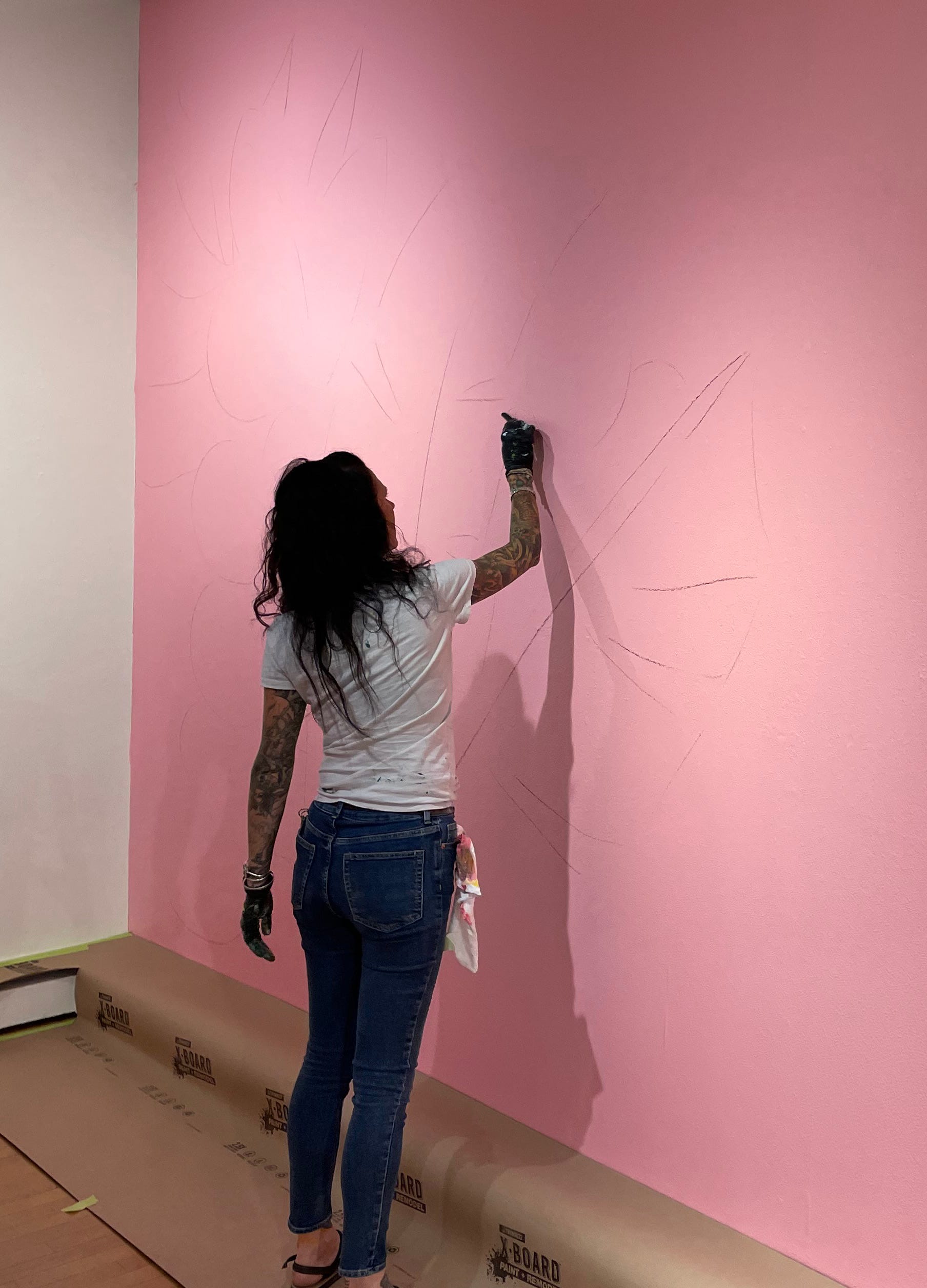 “This entire area is to be played with,” Palandech said, motioning to one of the smaller galleries. “There are various toys to play with and engage with. Amanda Lynn is doing a drawing, the outline for a mural, and then everyone’s gonna be encouraged to paint directly onto the walls. There’s gonna be little stop action movies playing and comfy cushions—just really fun and engaging.”