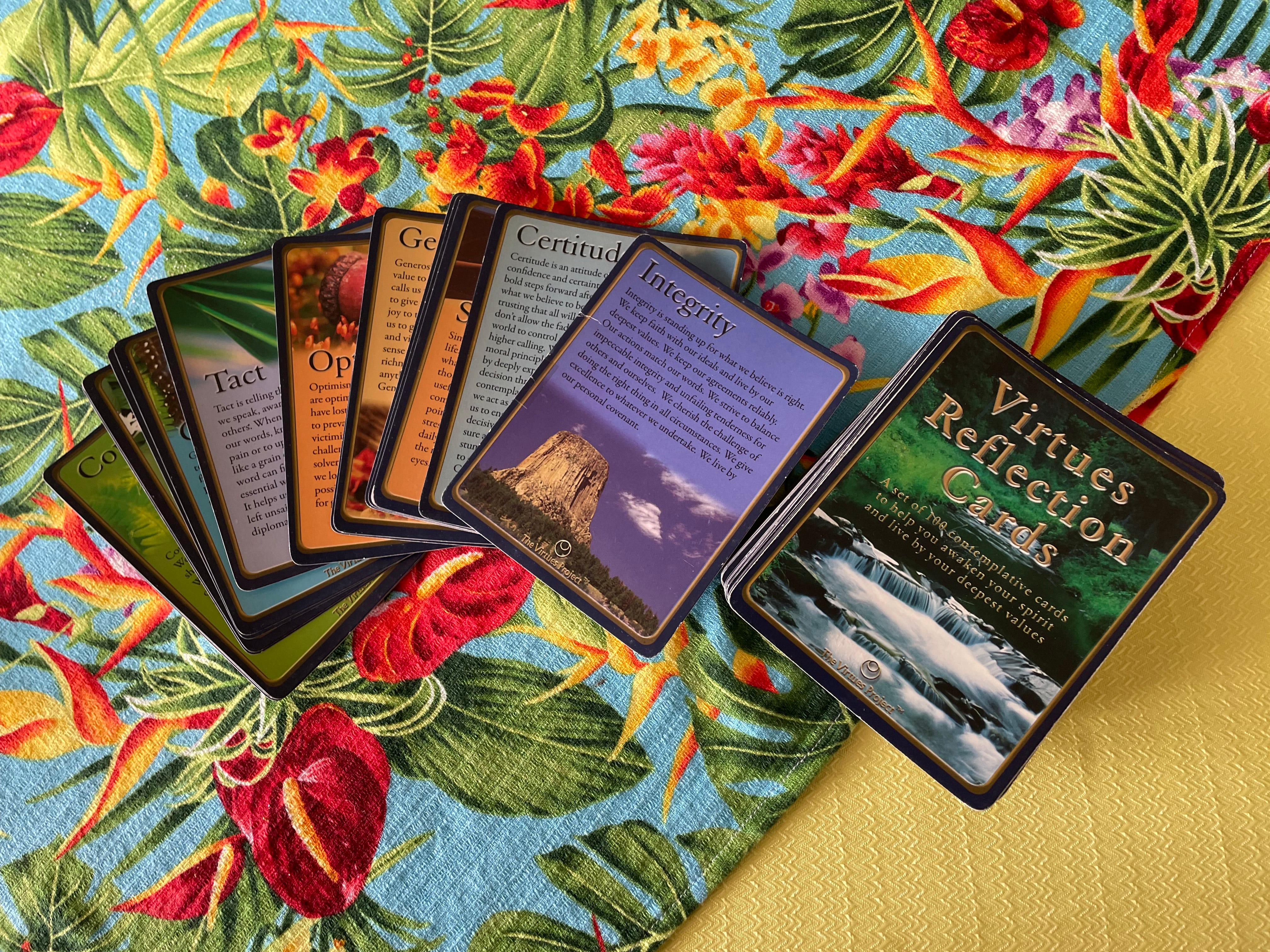 Now that they’ve run through all 100 virtues in the card deck, they’re not sure what they’re going to do next. Should they just run through the same list again? This is tempting because, even though they’ve given some of their signs away, they’ve still got most of them in a basket in their home office, and painting a new sign every other week is a bit of a hassle.