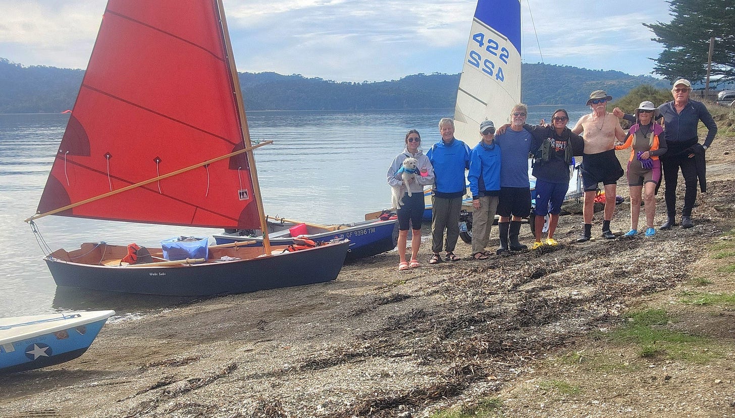 One of my sailing friends got the idea. My friends and I sail weekdays on Tomales Bay. We’re retired Sonoma County seniors: in order, oldest to youngest, Jerry, Dennis, me, Doug, and Daniel. Sailing is our social glue. We’ve sailed on Tomales Bay for decades.