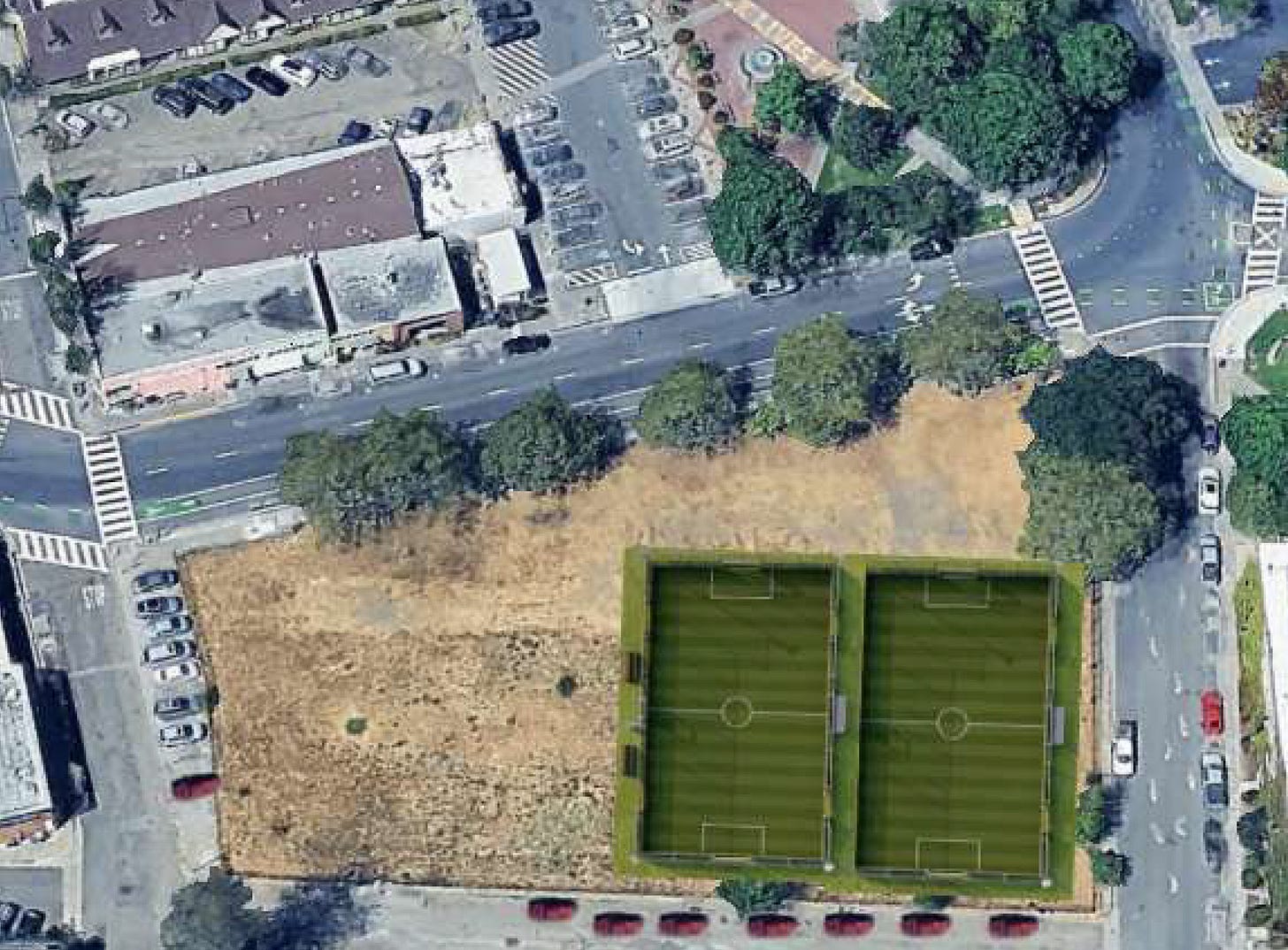 Yob presented two proposals—a permanent field utilizing artificial turf behind the Sebastopol Youth Annex and a temporary field on the site of Piazza’s future Hotel Sebastopol, in what is currently the empty lot across the street from the downtown plaza.