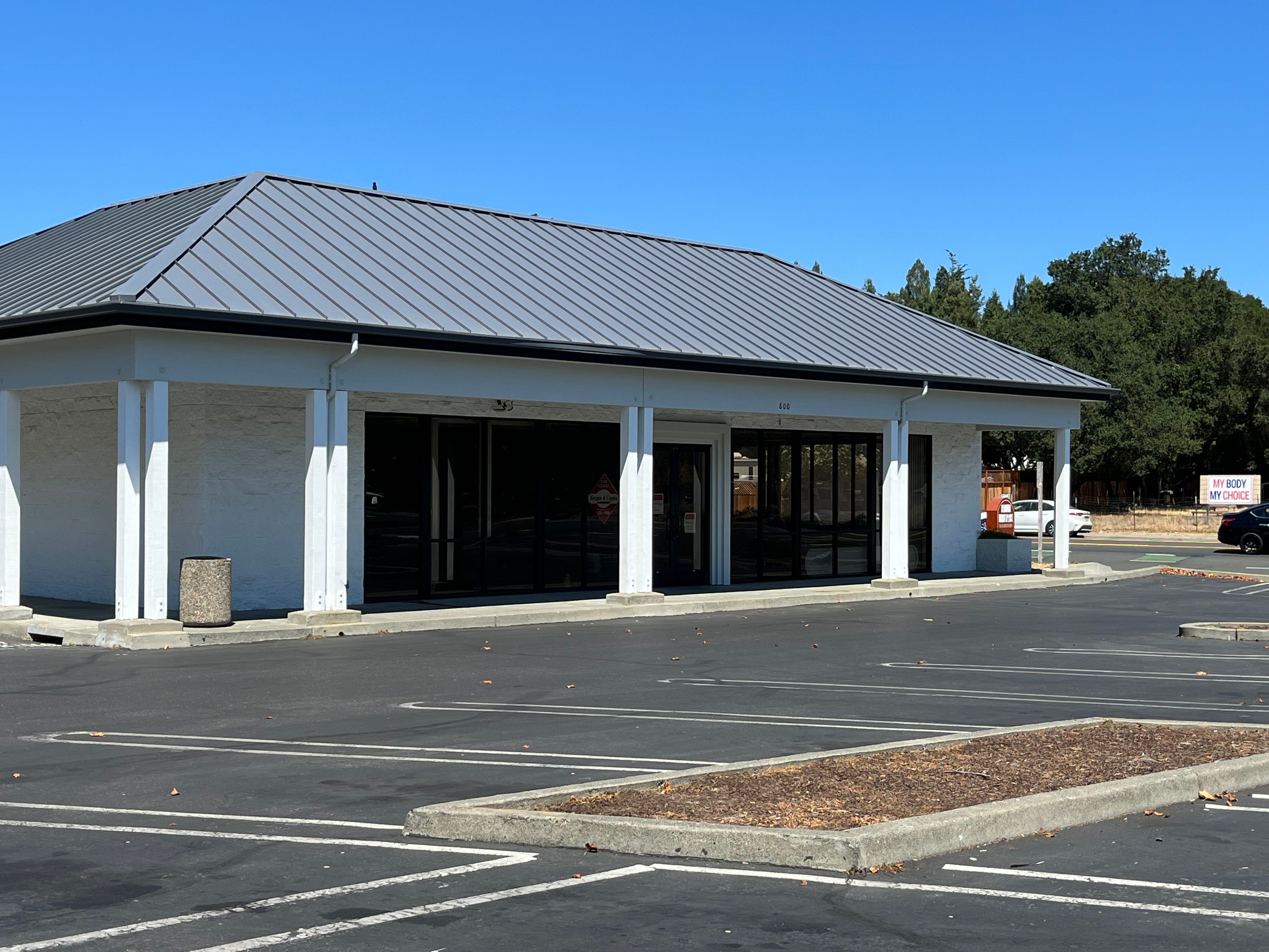 The pad building, which sits alone at the north corner of the property, once housed a bank. The source said that Exchange Bank wanted to move into that building but the owners said no. It was an unfortunate decision. Eventually, Exchange Bank built its own building across the street and moved out of Redwood Marketplace. The pad building has sat vacant for about 9 years.