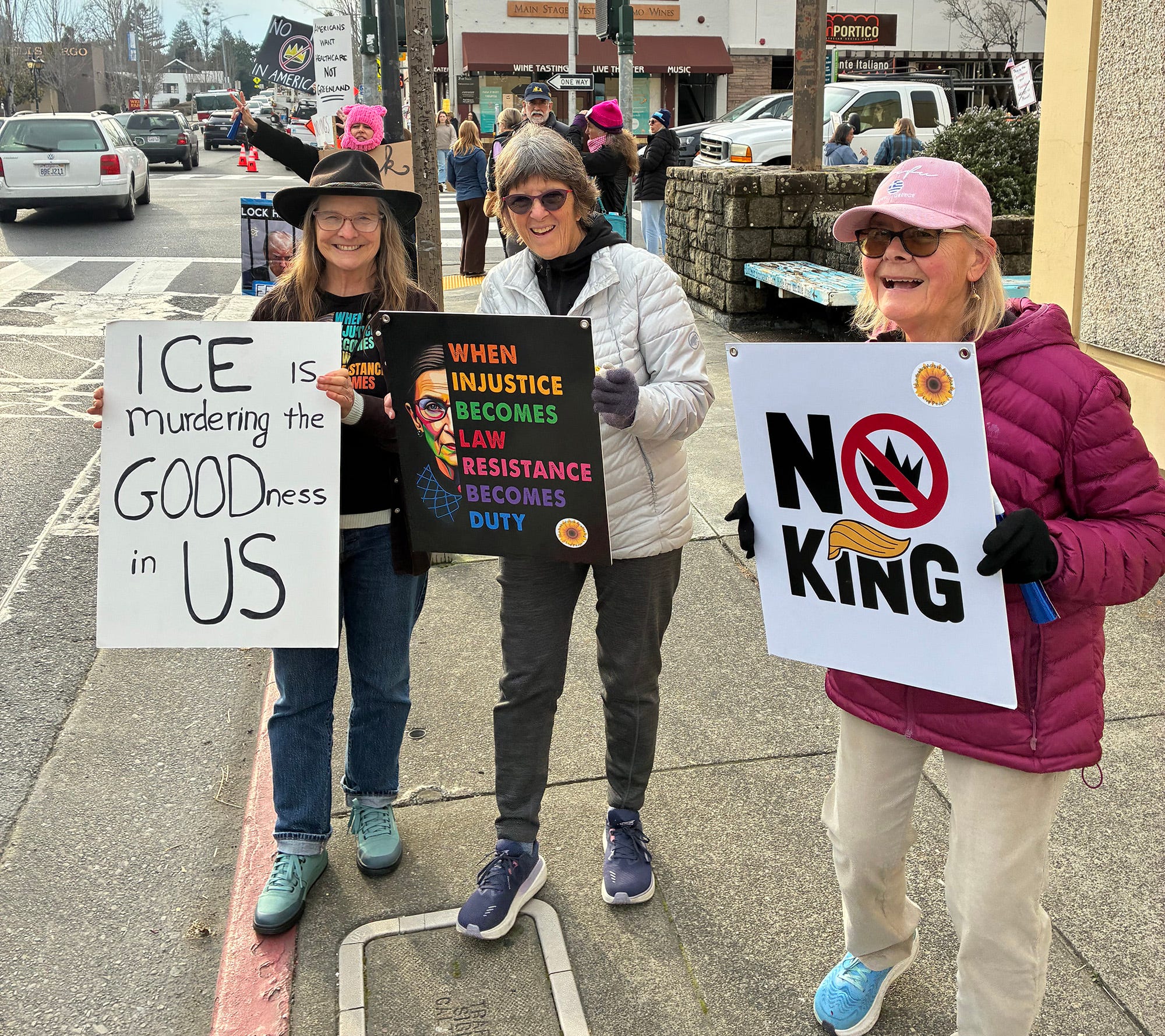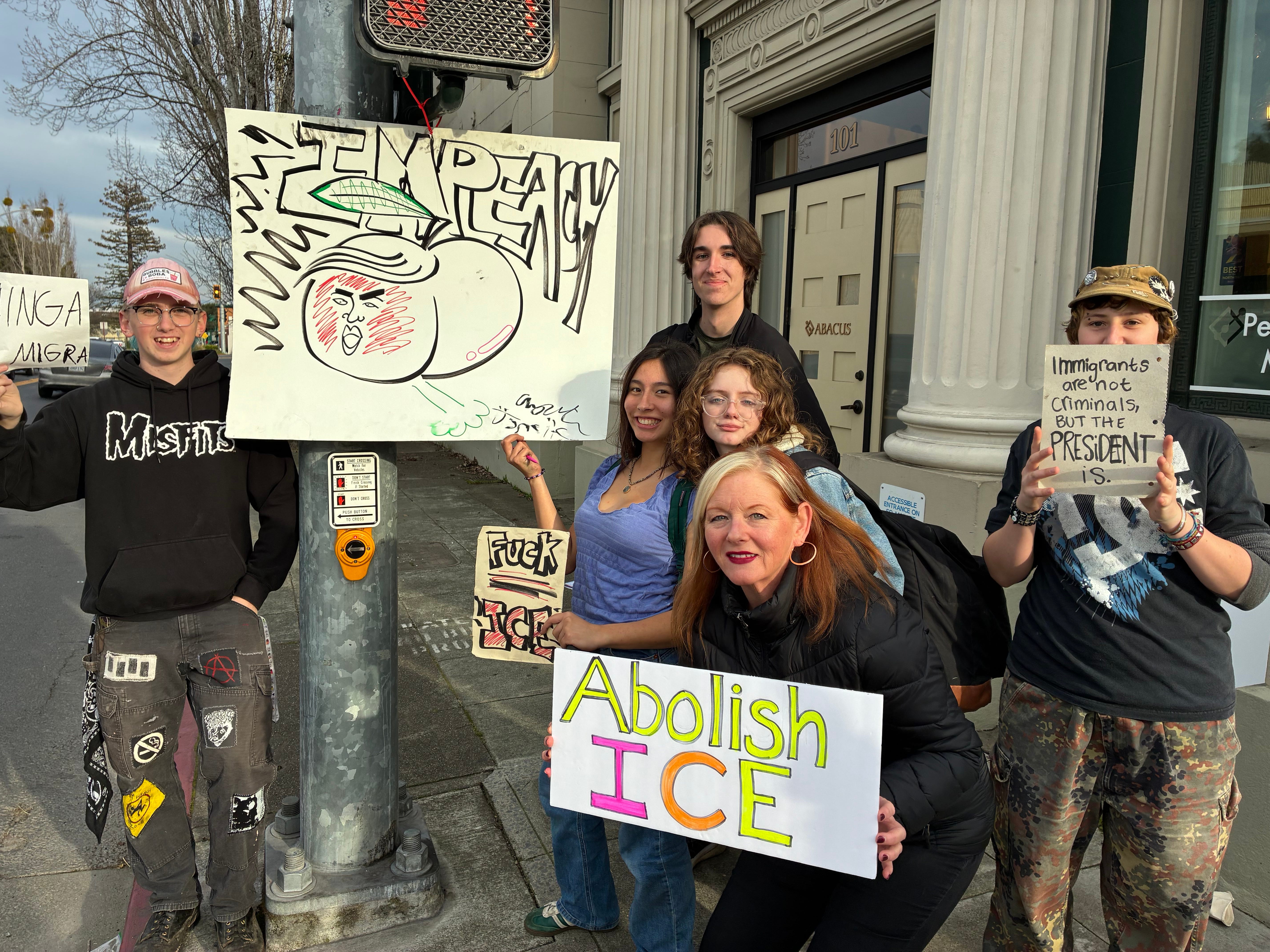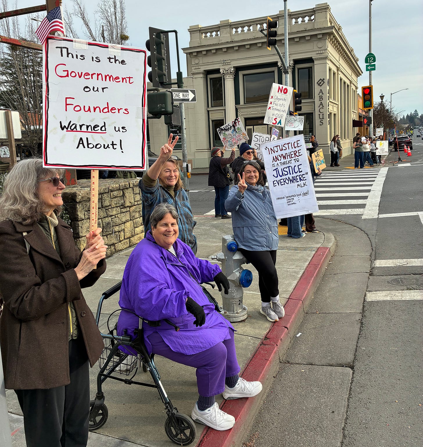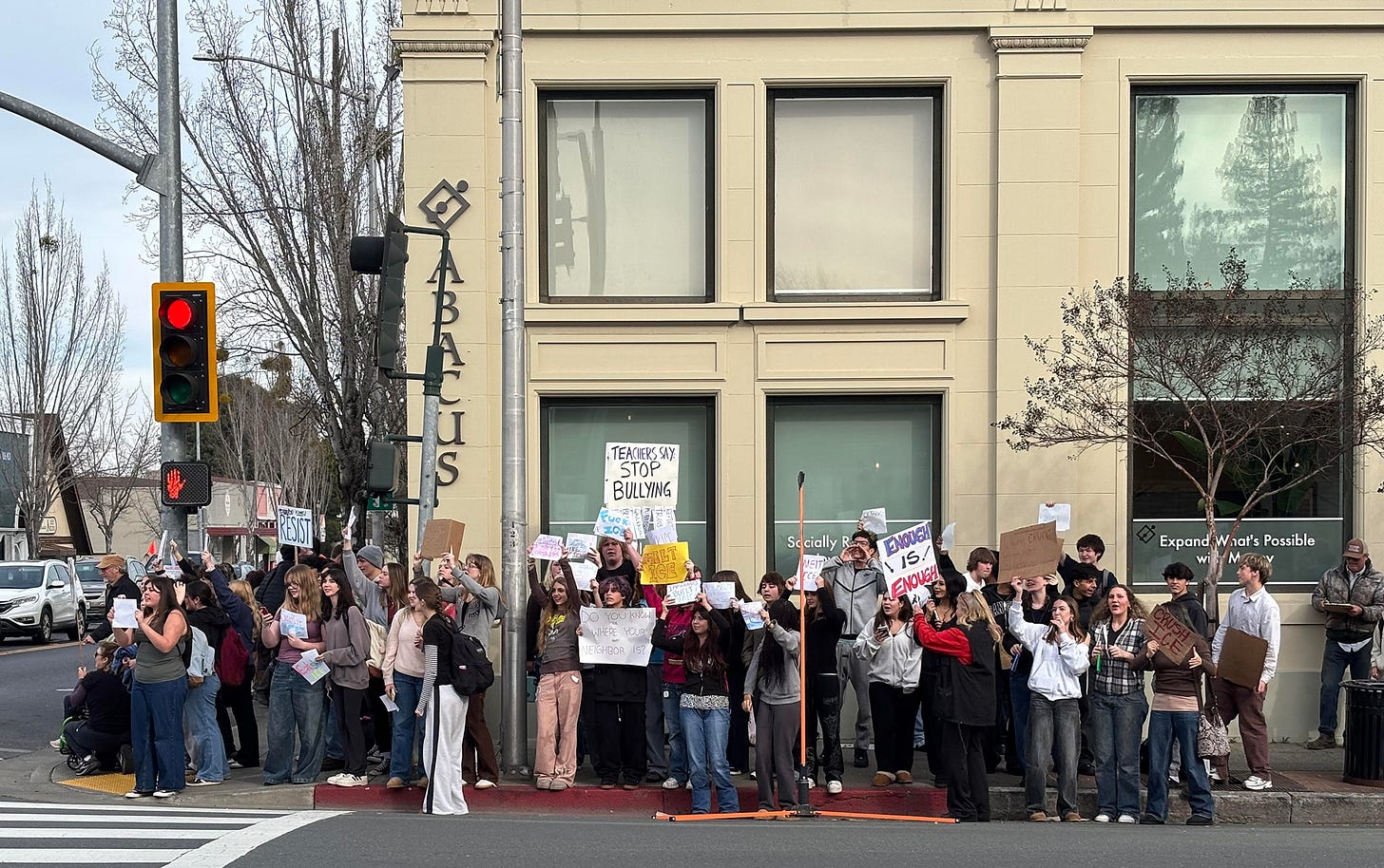 There was a Free America Walkout Rally in downtown Sebastopol this afternoon—just one of more than 400 similar events across the country. A large group of students walked down from Analy school, significantly lowering the usual age demographic for a Sebastopol protest.