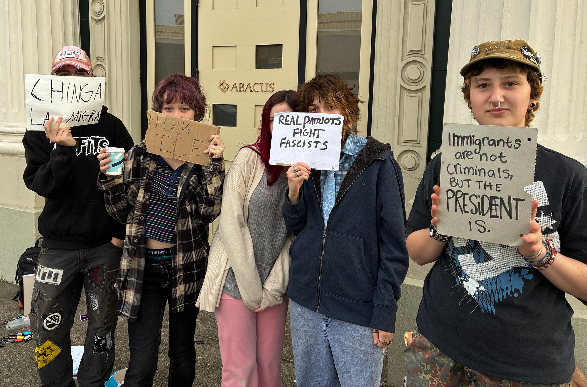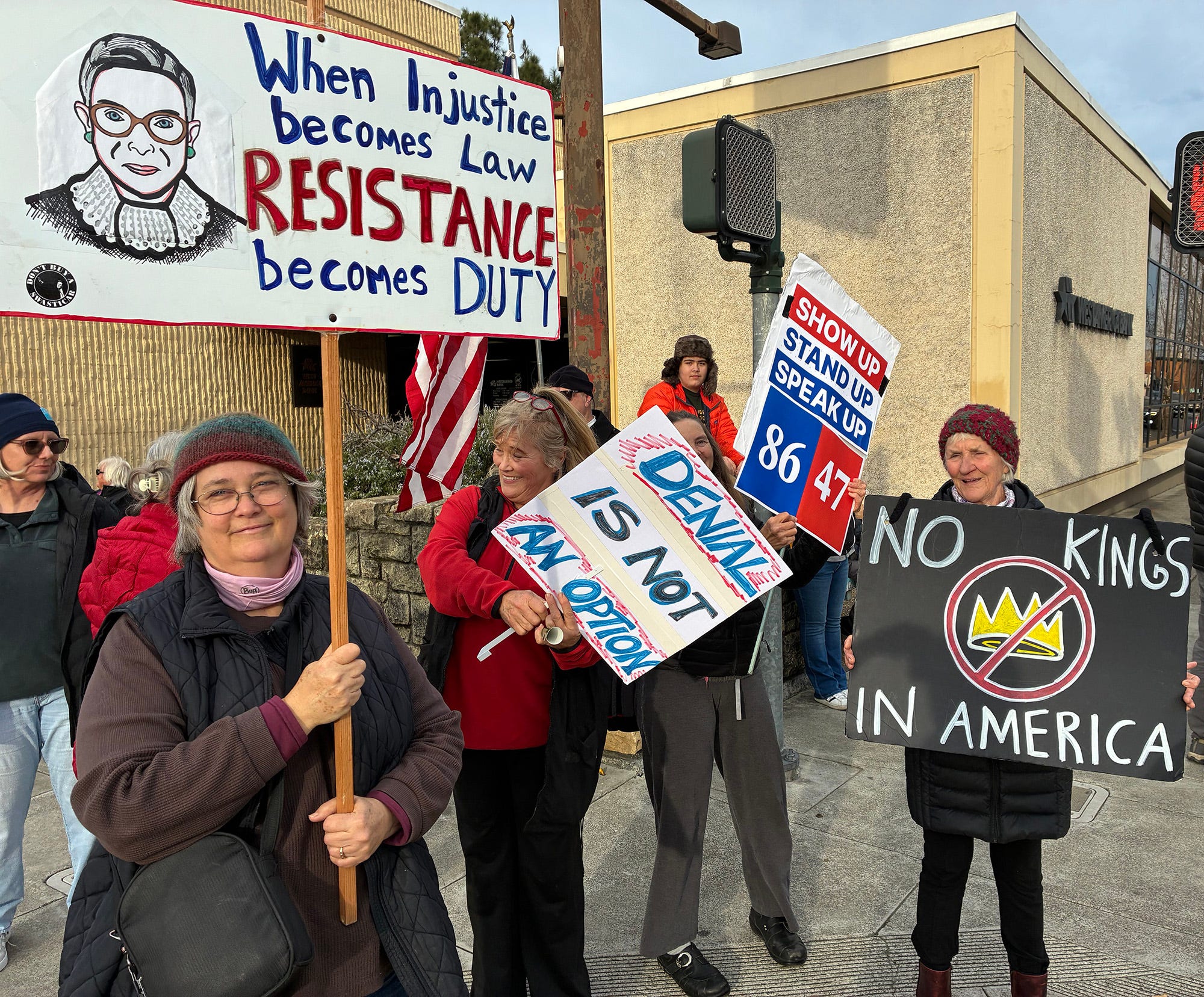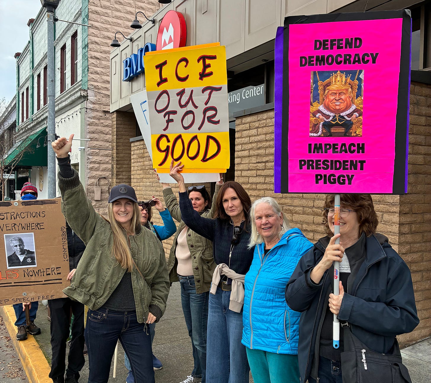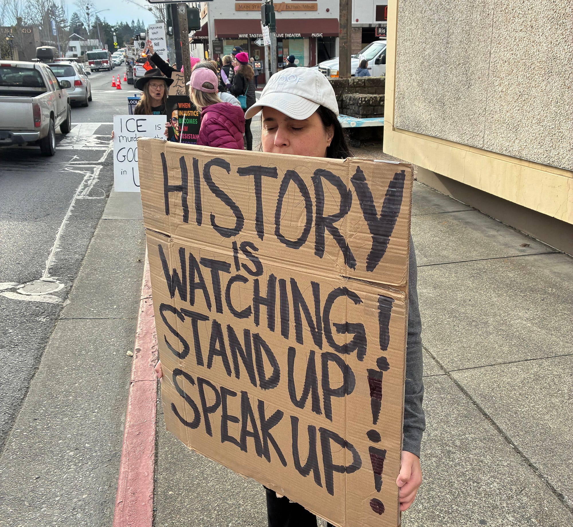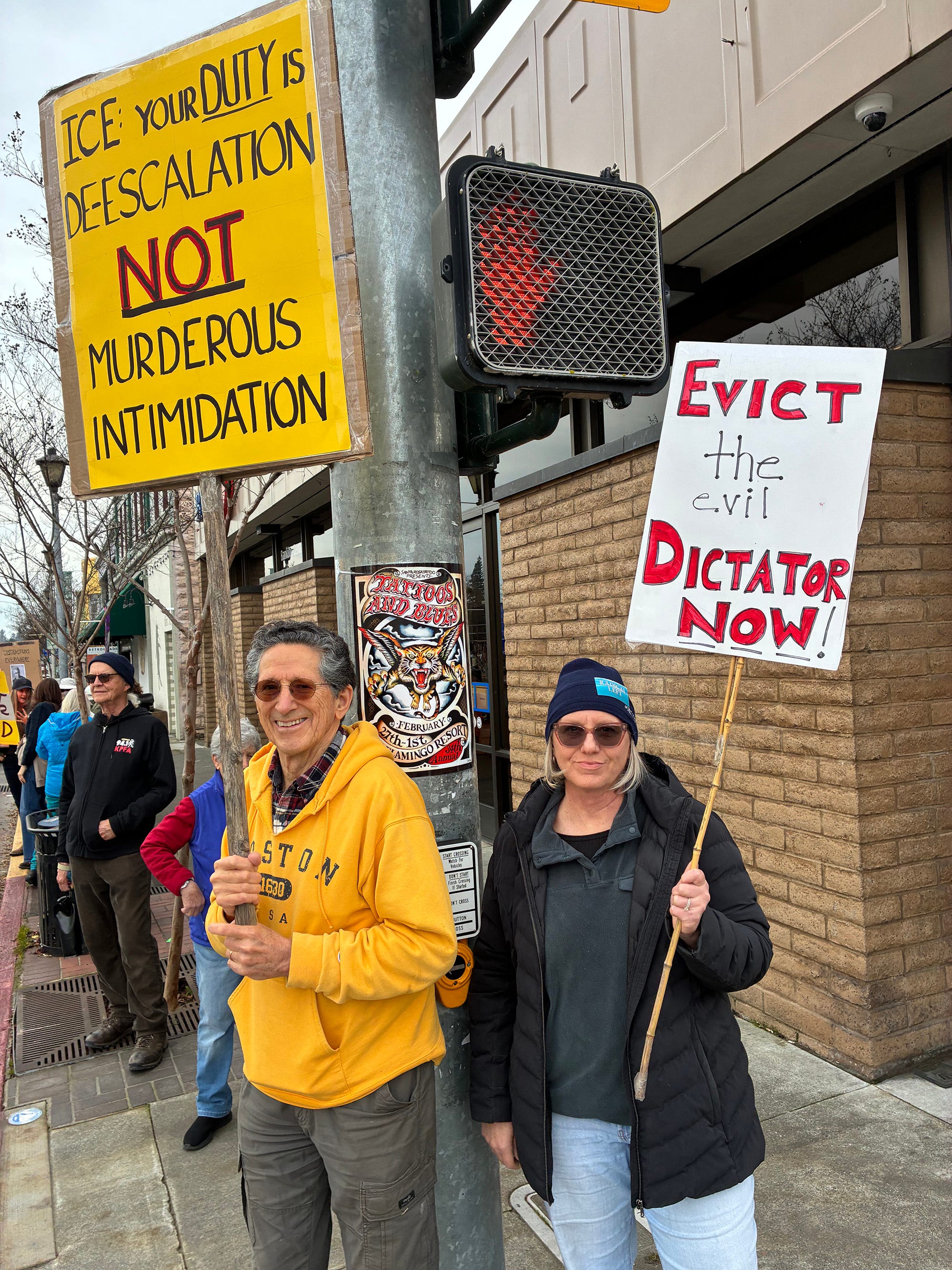 There was a Free America Walkout Rally in downtown Sebastopol this afternoon—just one of more than 400 similar events across the country. A large group of students walked down from Analy school, significantly lowering the usual age demographic for a Sebastopol protest.