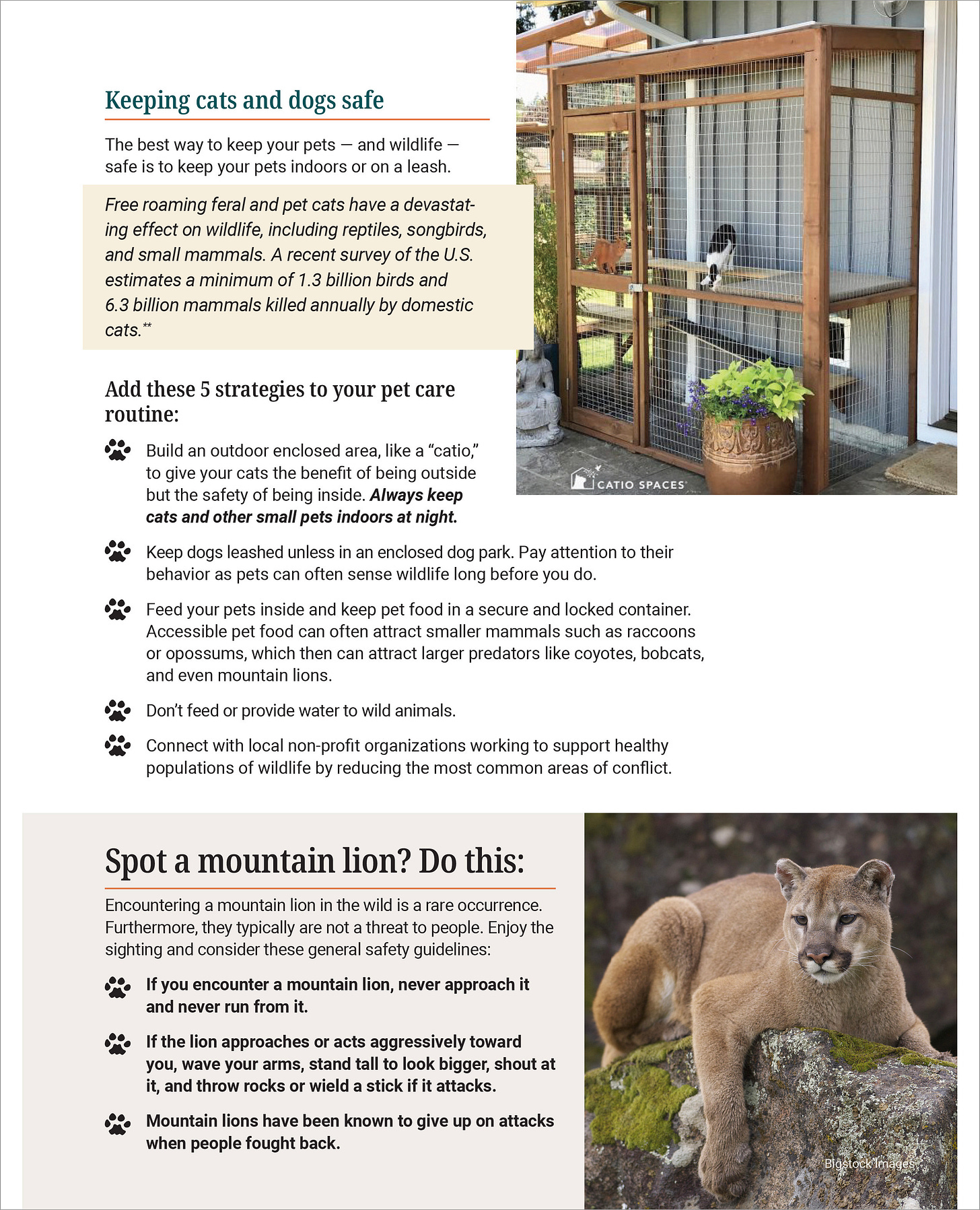 “Many people who call me say, ‘This never happened before!’ when they have had a loss,” Martins said. “But the thing is that, statistically, it makes sense that it doesn’t happen very often to an individual, because one mountain lion can easily have 5,000 to 10,000 private properties in its territory—and you end up being just one of many people. The problem is that you never know when it’s going to happen, but it is very likely to happen at some point in time, especially if you are living in a high-use lion area. Essentially, you are creating a situation which just shouldn’t happen in the first place.”
