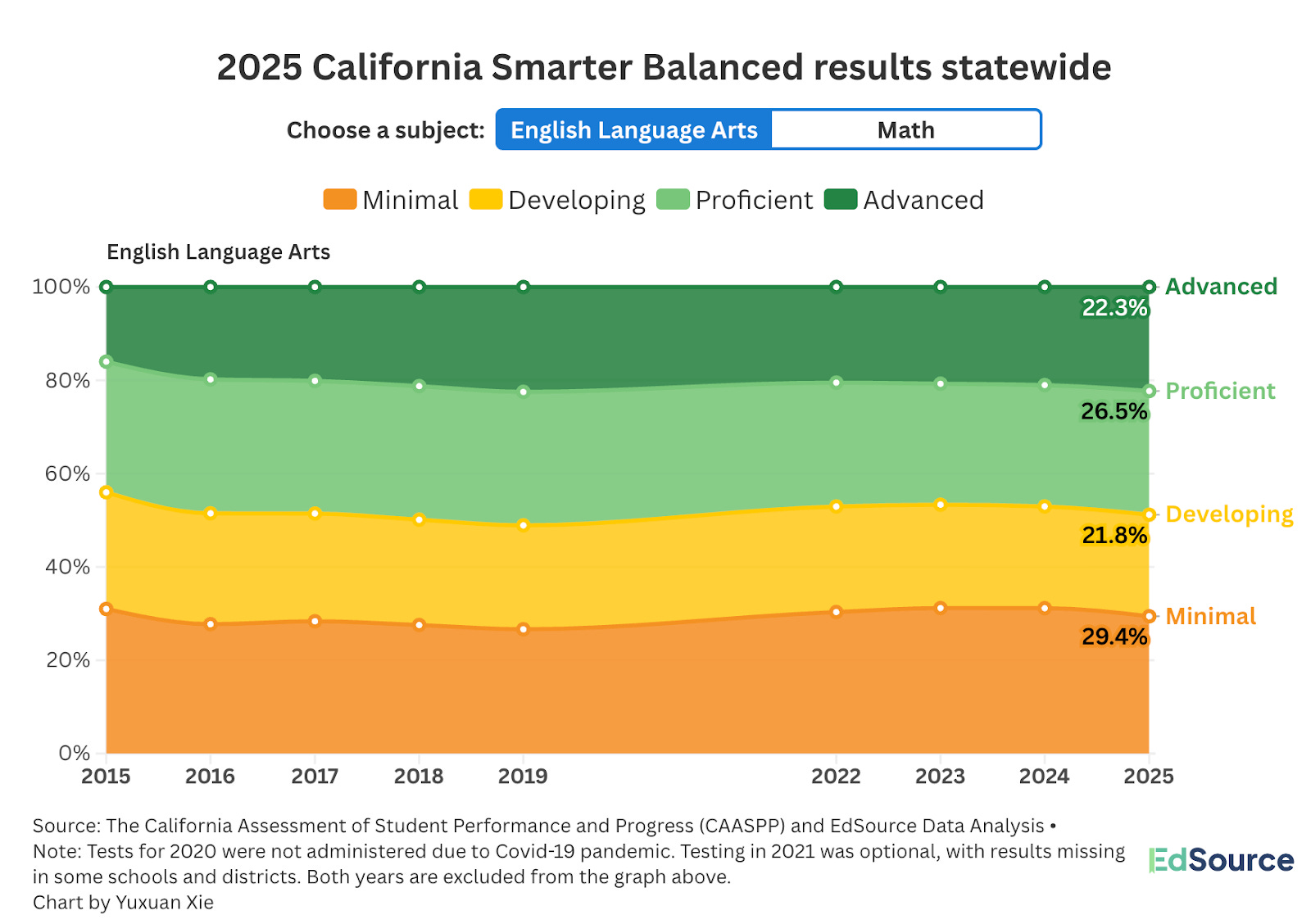 For more than 20 years, California has relied on standardized tests to measure how well students are learning. These tests are called Smarter Balanced Summative Assessments and go by the acronym CAASPP (pronounced CASP). The State of California Department of Education has spent hundreds of millions of dollars with Educational Testing Service (ETS) on testing students each year.