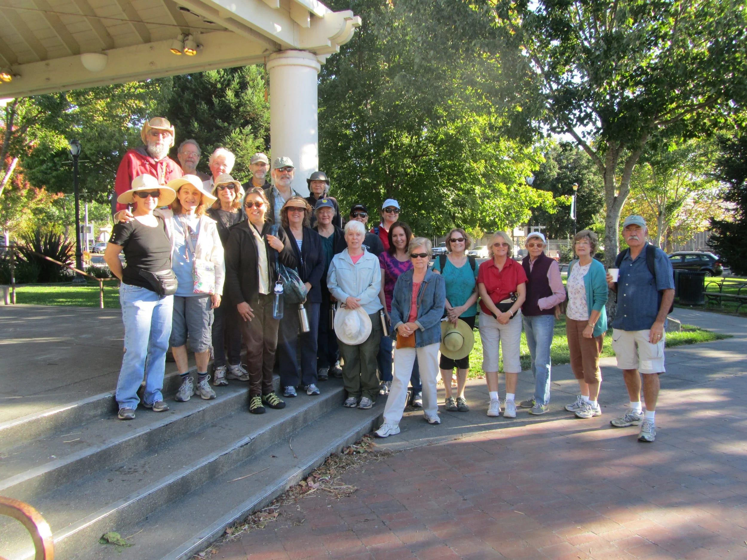 All of these volunteers are hanging up their spurs after tomorrow’s walk, which the official flyer describes this way: “For the final walk, we will be exploring some of the many locations we’ve visited in the past. We’ll stop at Libby Park for a picnic. Bring your own brown bag lunch and maybe some goodies (chocolate, cookies) to share. There will be grateful thanks to the many leaders who have organized such fun, insightful, and educational walks—and to all the walkers who turned out to celebrate Sebastopol.”