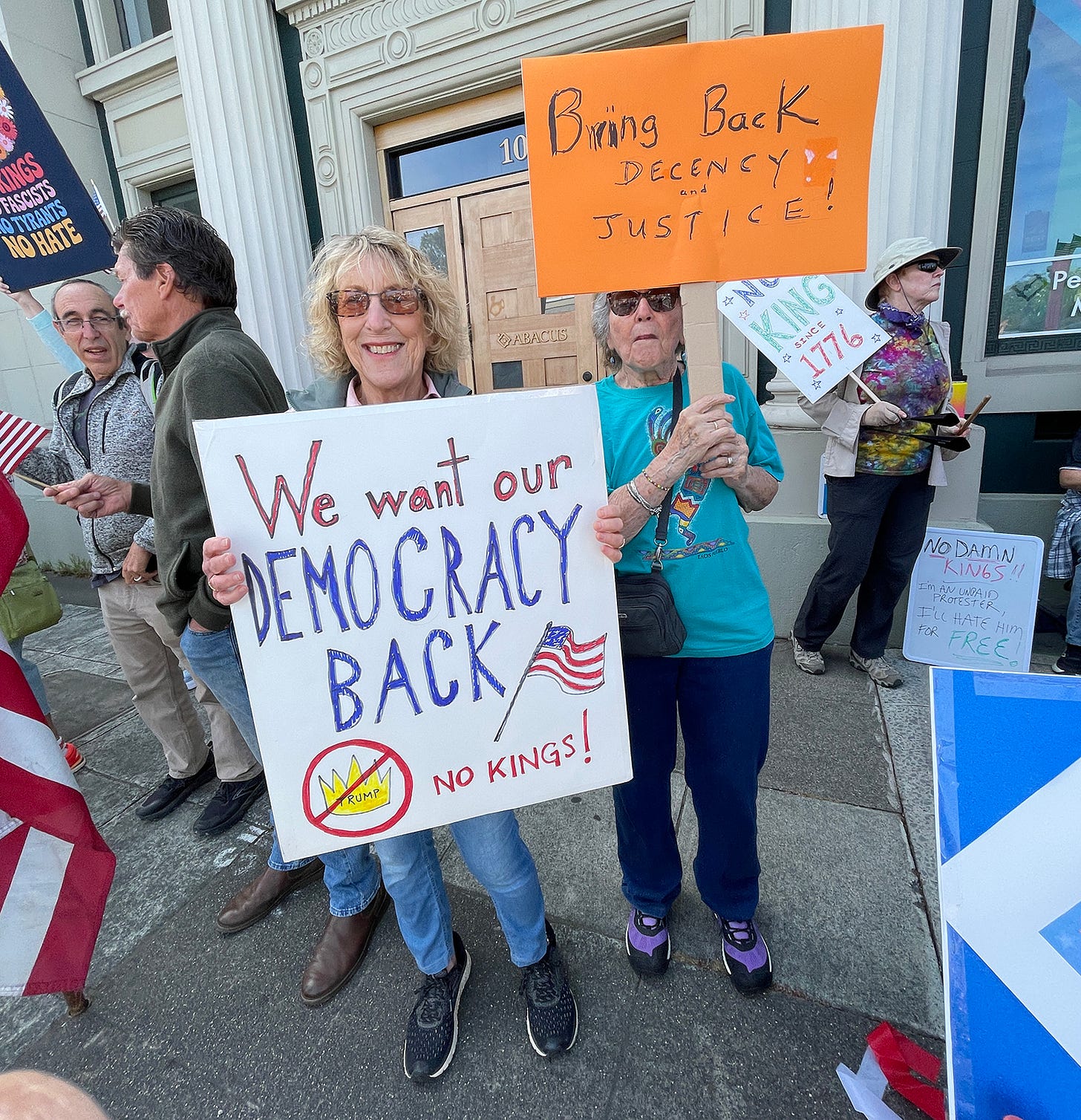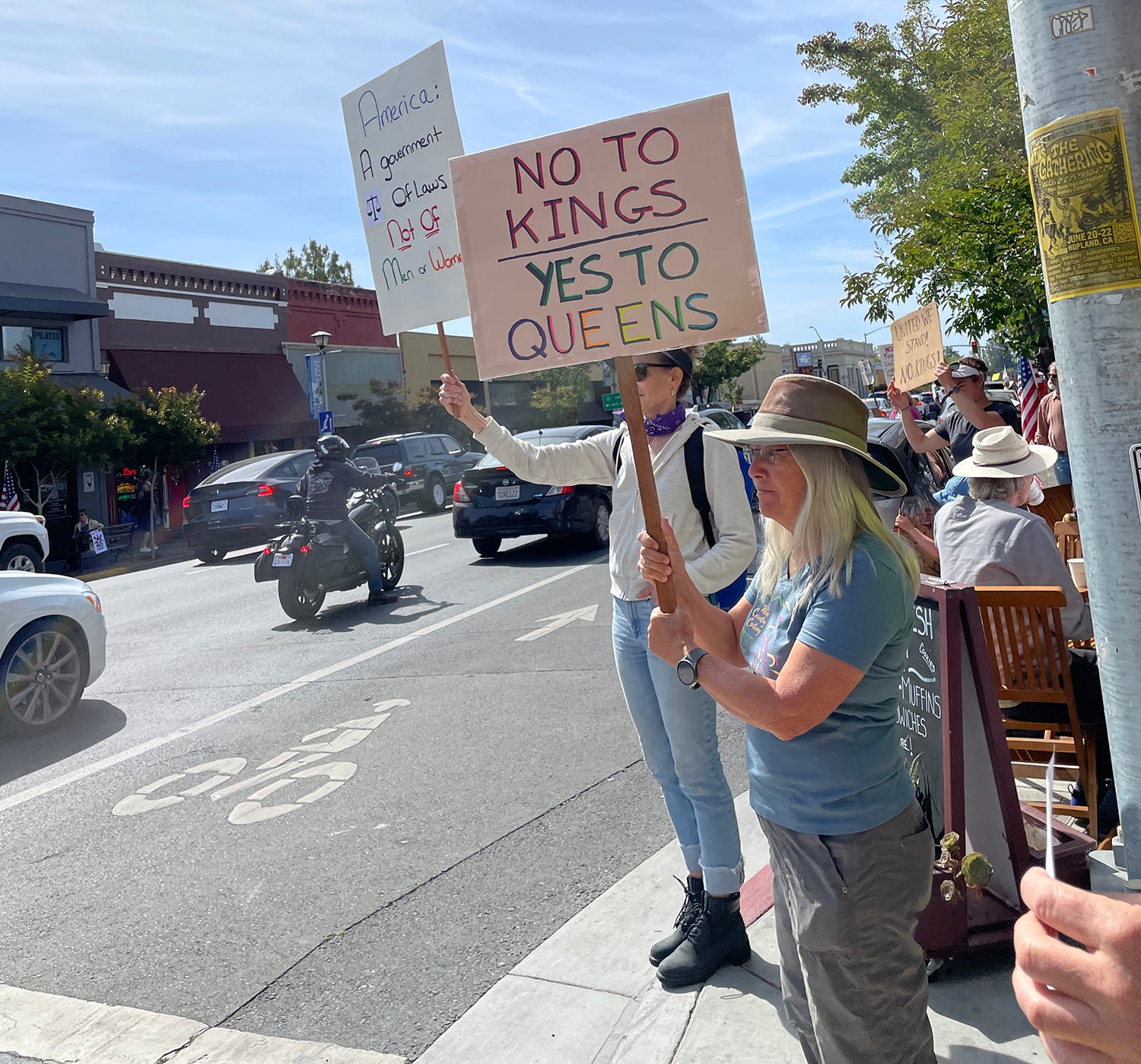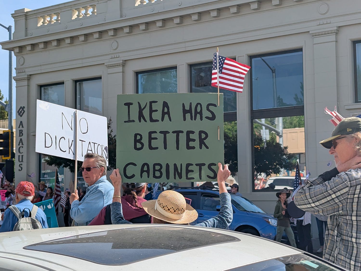 Katherine Fong's favorite signs from Sebastopol's No Kings protest A few more signs from Saturday's protestJun 15, 20255SharePhotos by Katheryn FongAs I was taking photos at the protest, I noticed that one of our readers, Katheryn Fong, was diligently walking down the street and capturing signs that caught her eye. Here are some of her favs.PreviousNext