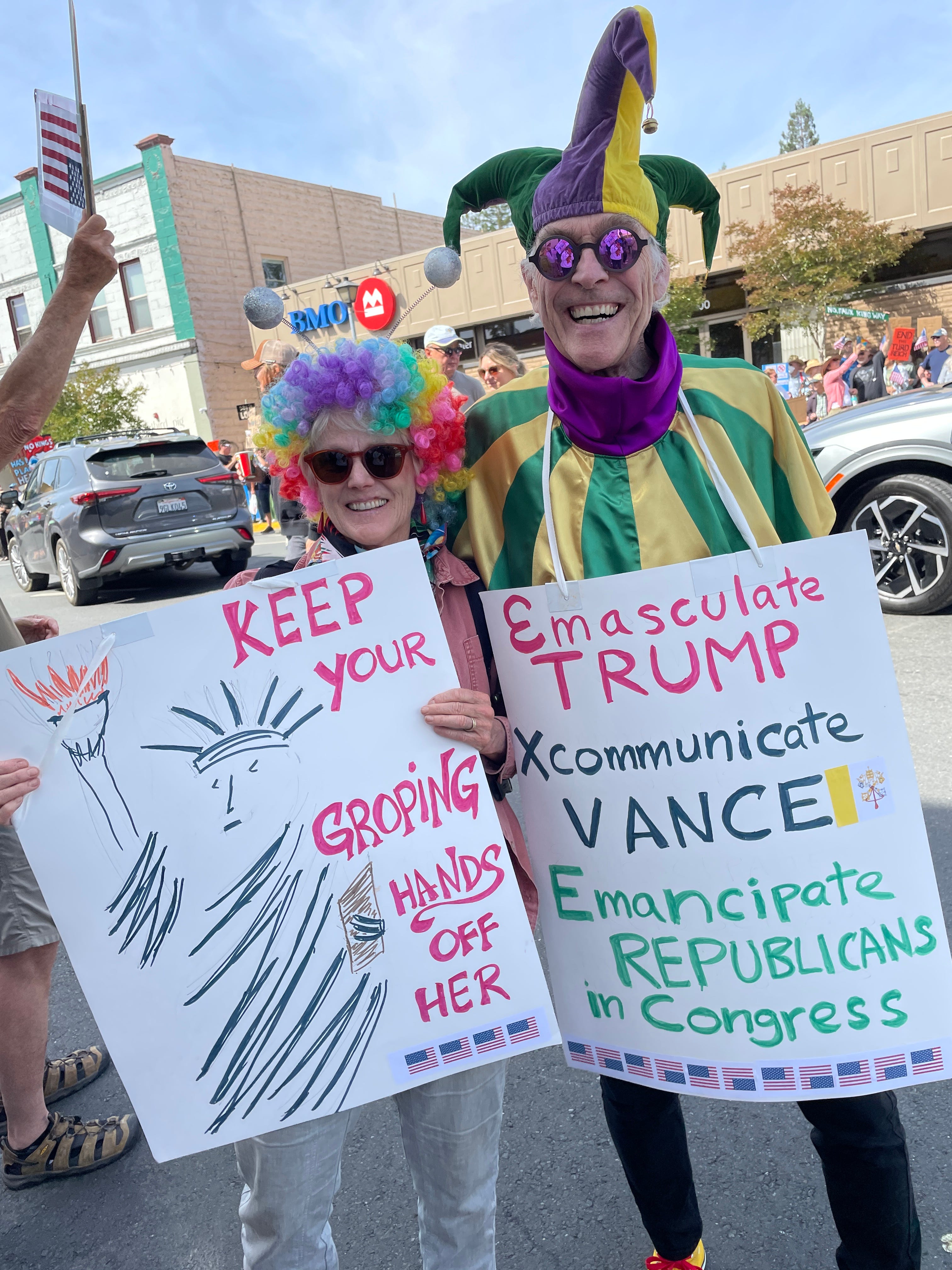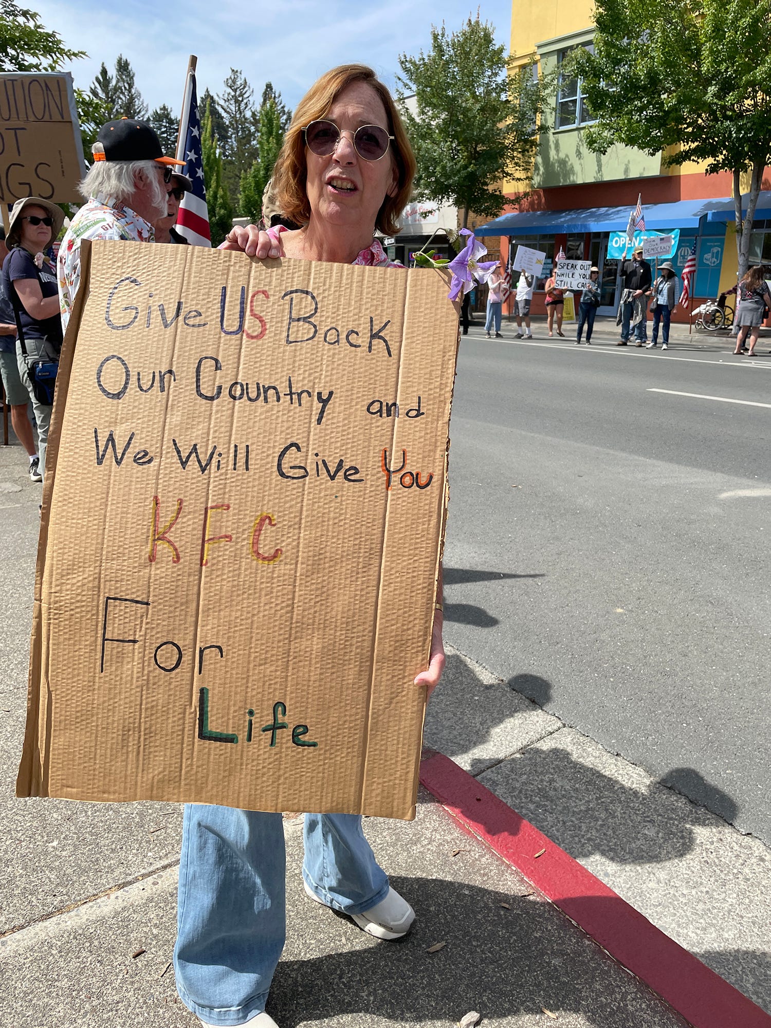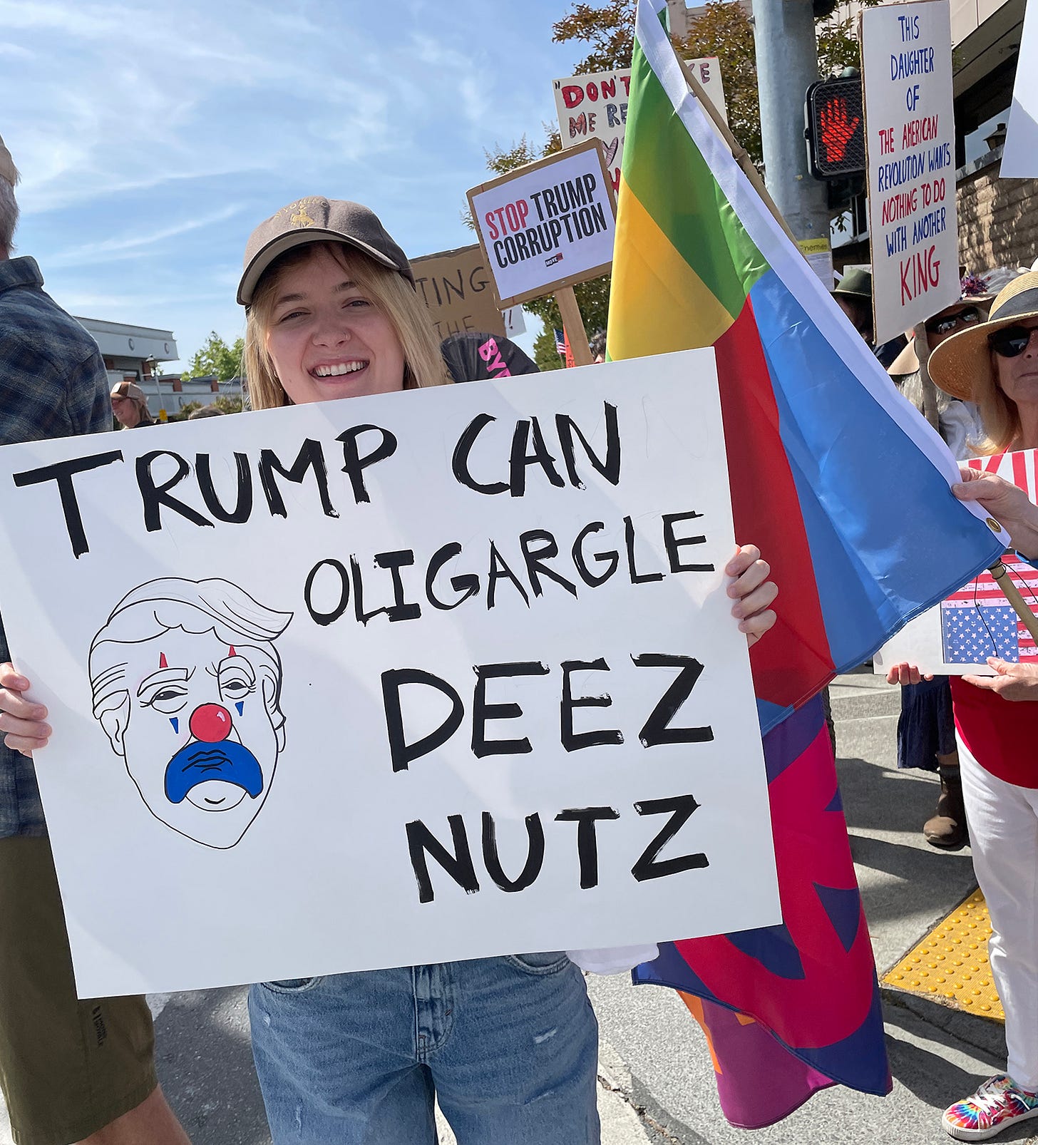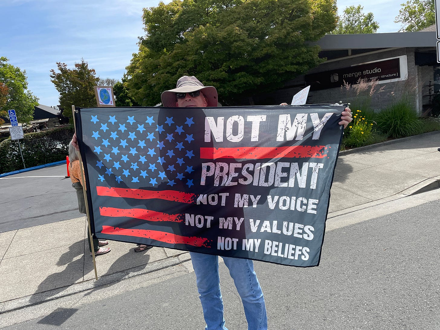 Katherine Fong's favorite signs from Sebastopol's No Kings protest A few more signs from Saturday's protestJun 15, 20255SharePhotos by Katheryn FongAs I was taking photos at the protest, I noticed that one of our readers, Katheryn Fong, was diligently walking down the street and capturing signs that caught her eye. Here are some of her favs.PreviousNext