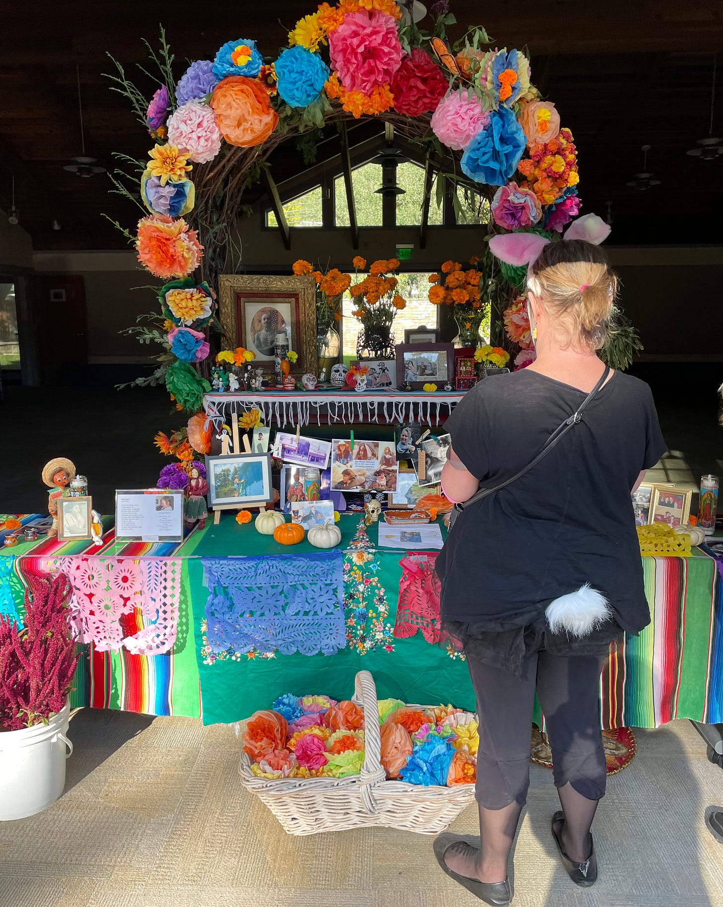 The Friends of Monte Rio, an organization that does a lot to bring people together in that unique town, arranged tables and chairs, craft booths, and places for community organizations in support of women and children to reach out to the gathering. And then there was the large, colorful altar with the names and pictures of the departed spread out and lifted up for everyone to see.