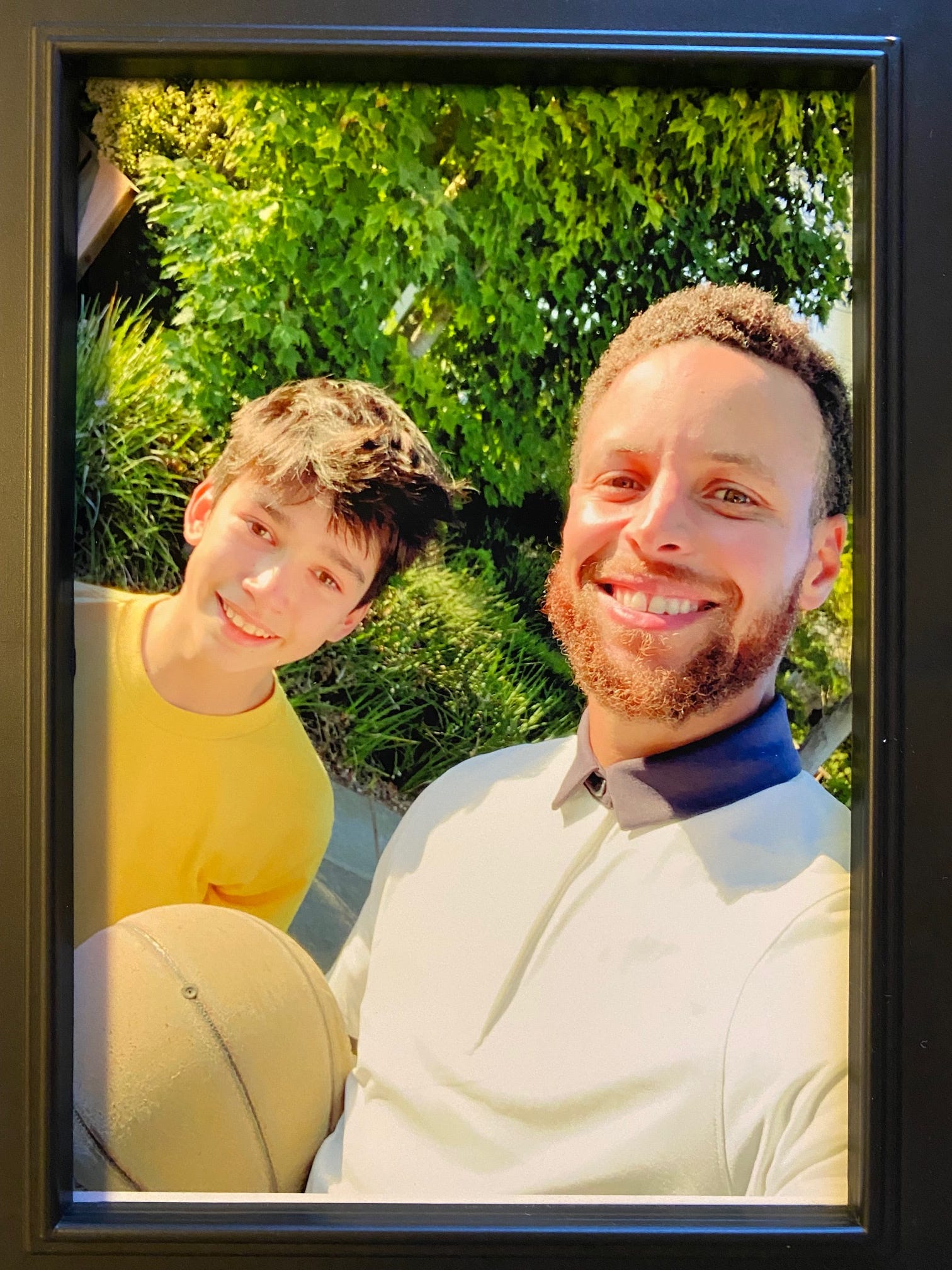 Andrew sent his Grandmother Nichae an email about this gigantic event in his life and attached a copy of the picture. Up to that point, Grandmother Nichae had no idea who Steph Curry is. Well aware of most everything else, she had not been interested in sports. That’s all changed now. Nichae had the photo enlarged and framed, sent a copy to Andrew, and kept one for herself.