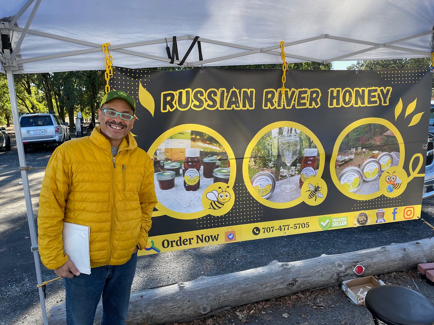 Gutierrez sells his honey from a roadside stand in downtown Forestville and south Sebastopol a few days each week. He also trades honey to landowners who let him locate his hives on their property. (See our November 2024 story on Gutierrez.)