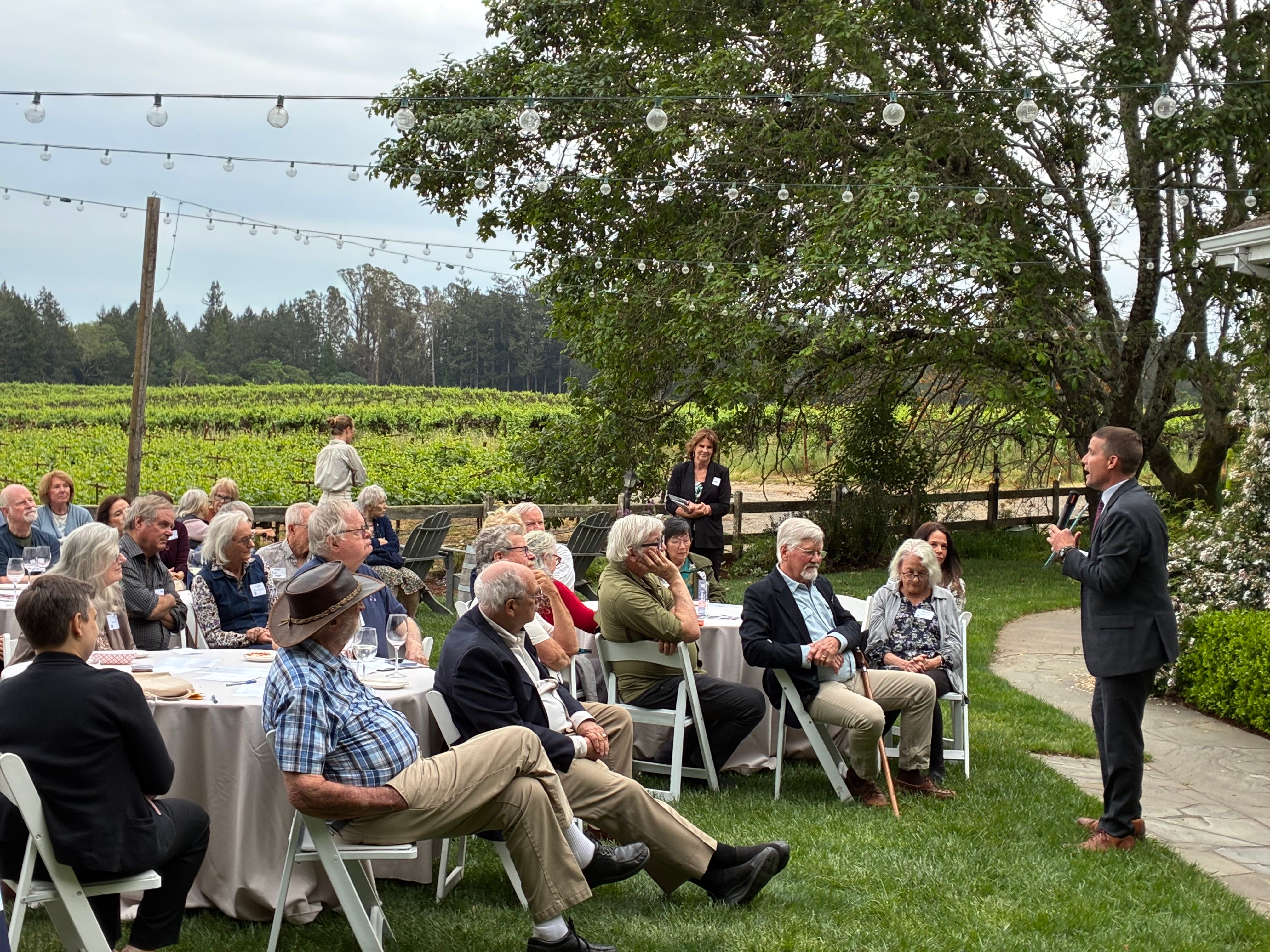 McGuire spoke to an enthusiastic crowd at a Vine Hill House fundraiser on Monday night, organized by former Sebastopol Mayor Diana Rich, Daniel Rich, Dan and Jan O’Connell (the owners of Vine Hill House), Marty Webb and Tamsin and Zack Smith.