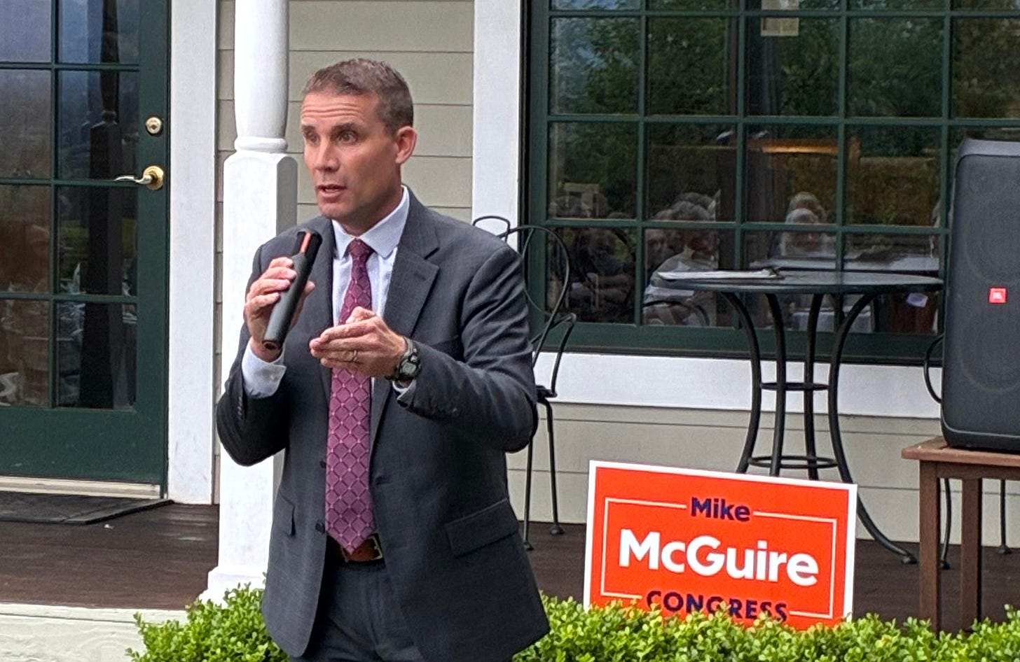 Mike McGuire swung through West County on Monday night as a part of his campaign to win the congressional seat for District 1, which starting in 2027 will stretch from Sebastopol to the Nevada border