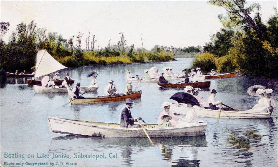 Lake Jonive played an important role in the early days of Sebastopol, but filling and sedimentation have rendered it a mere ghost of its former self. (Read this sad and fascinating history of our local lake.)