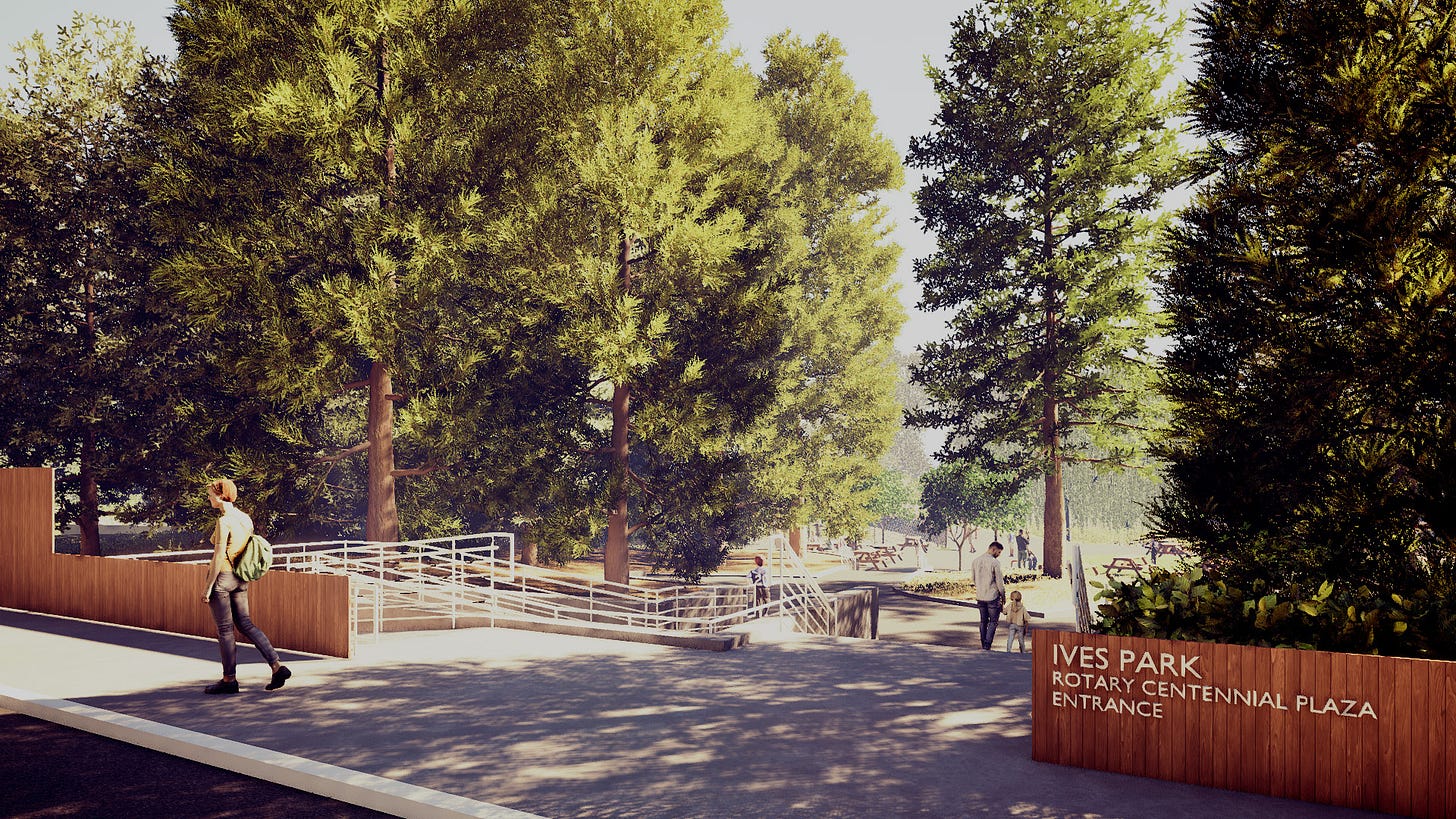 ADA Upgrades to West Park Entry (Jewell Avenue): The project will upgrade the west entry to provide an ADA accessible path of travel into the park, upgrade the landscaping and fencing in the immediate area, and install new Ives Park identification signage.