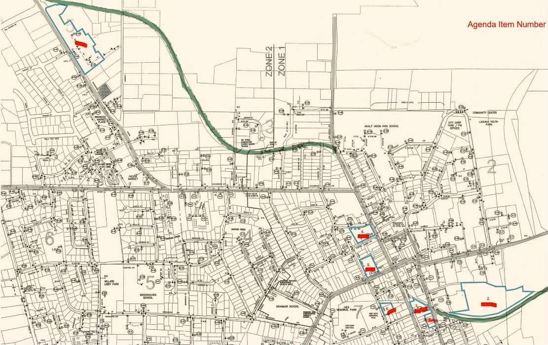 The Funding subcommittee explored six potential properties around town: the railroad property (behind the feed store), the towing company site (next to the city parking lot behind the Chamber office), Calder Creek corridor (the city parking lot across from SebArts), the Rite Aid building in downtown, the current library site, and the O’Reilly complex at the north end of town.