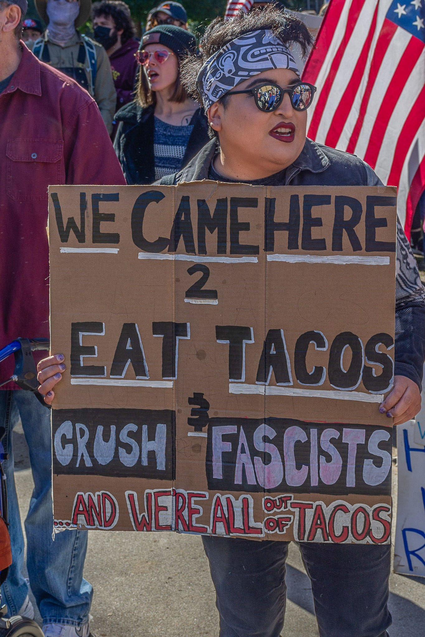“The example I use is these three women in the Civic Center holding pictures of kids in cages. And the first thing people do when you point a camera at them is they smile. And I had to say, ‘Please don’t smile. I can’t use that. I’m not going to use that if you smile. Look at your signs.”