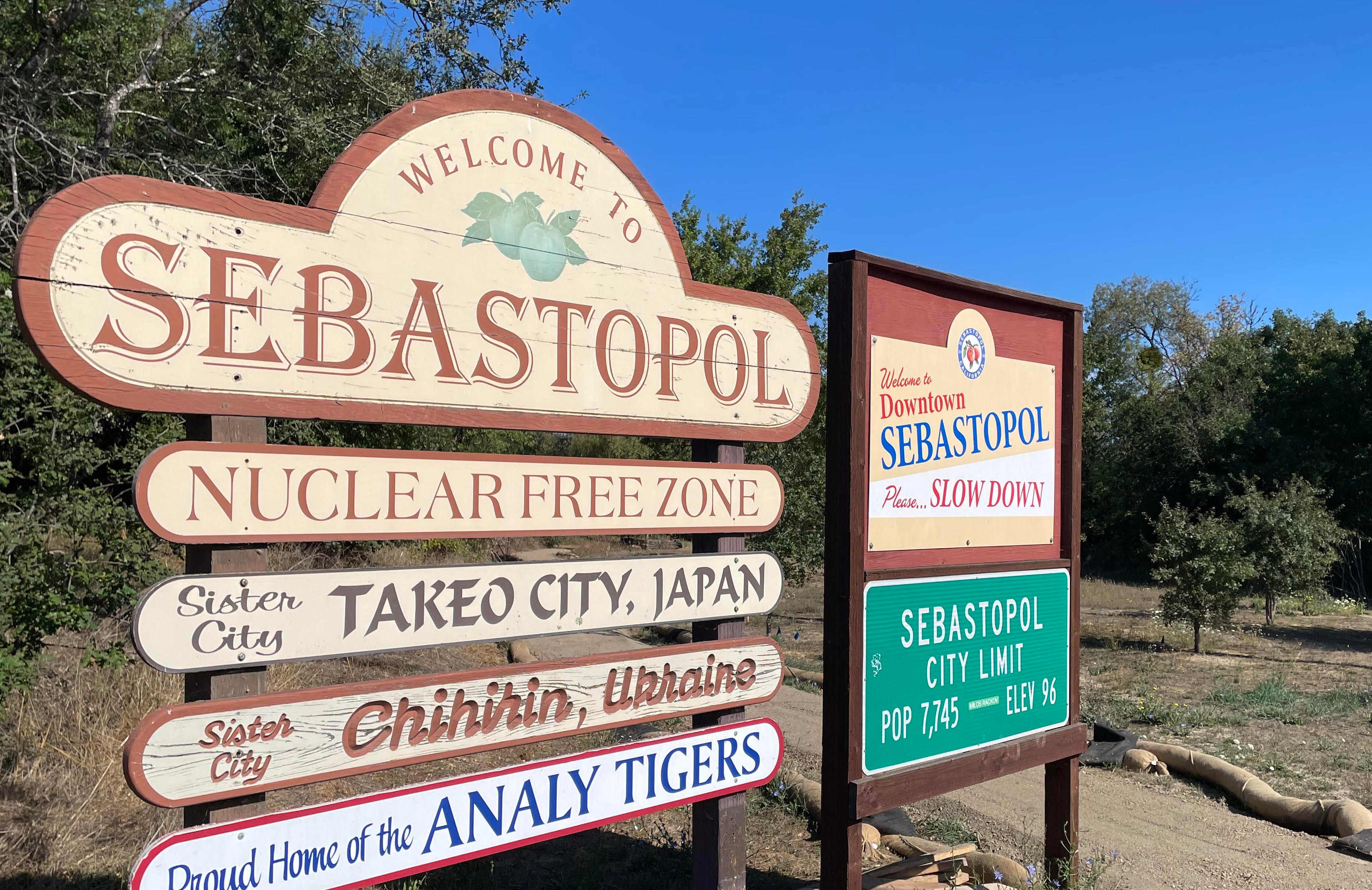 When you drive into Sebastopol, an official city sign welcomes you to town and informs you that you have entered a Nuclear Free Zone.