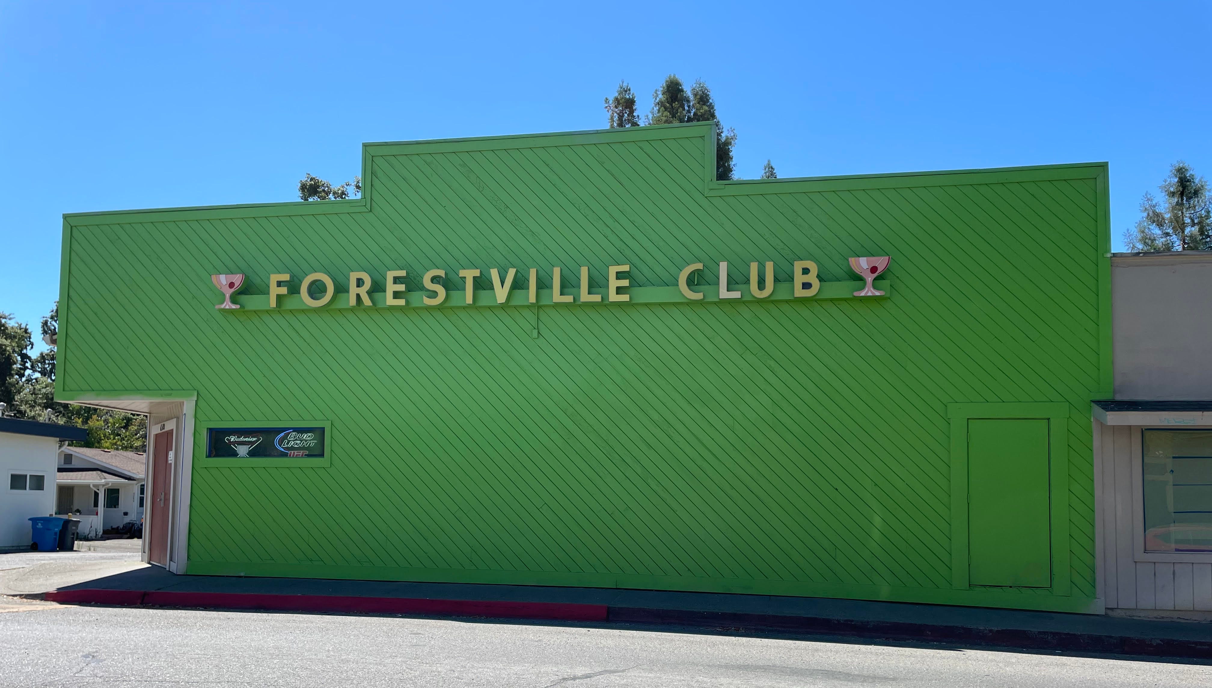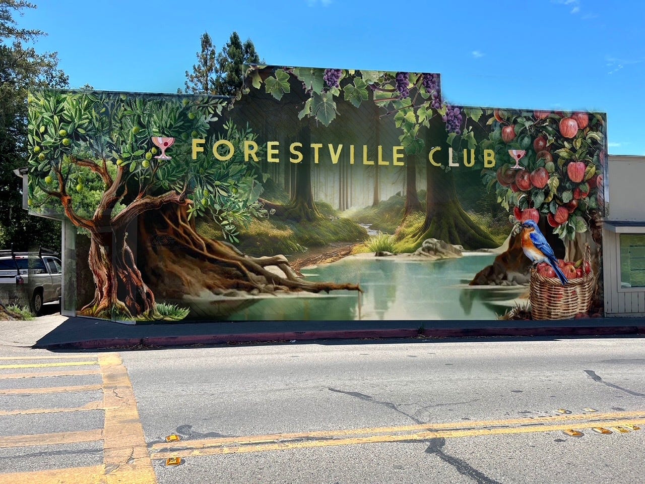 We wouldn’t be surprised if many Forestvillians are scratching their heads over the violent lime green paint job on the Forestville Club at the southern entrance to Forestville’s downtown. It’s not just the color, but the fact that one of the town’s beloved, older murals—a mountain scene—was painted over.