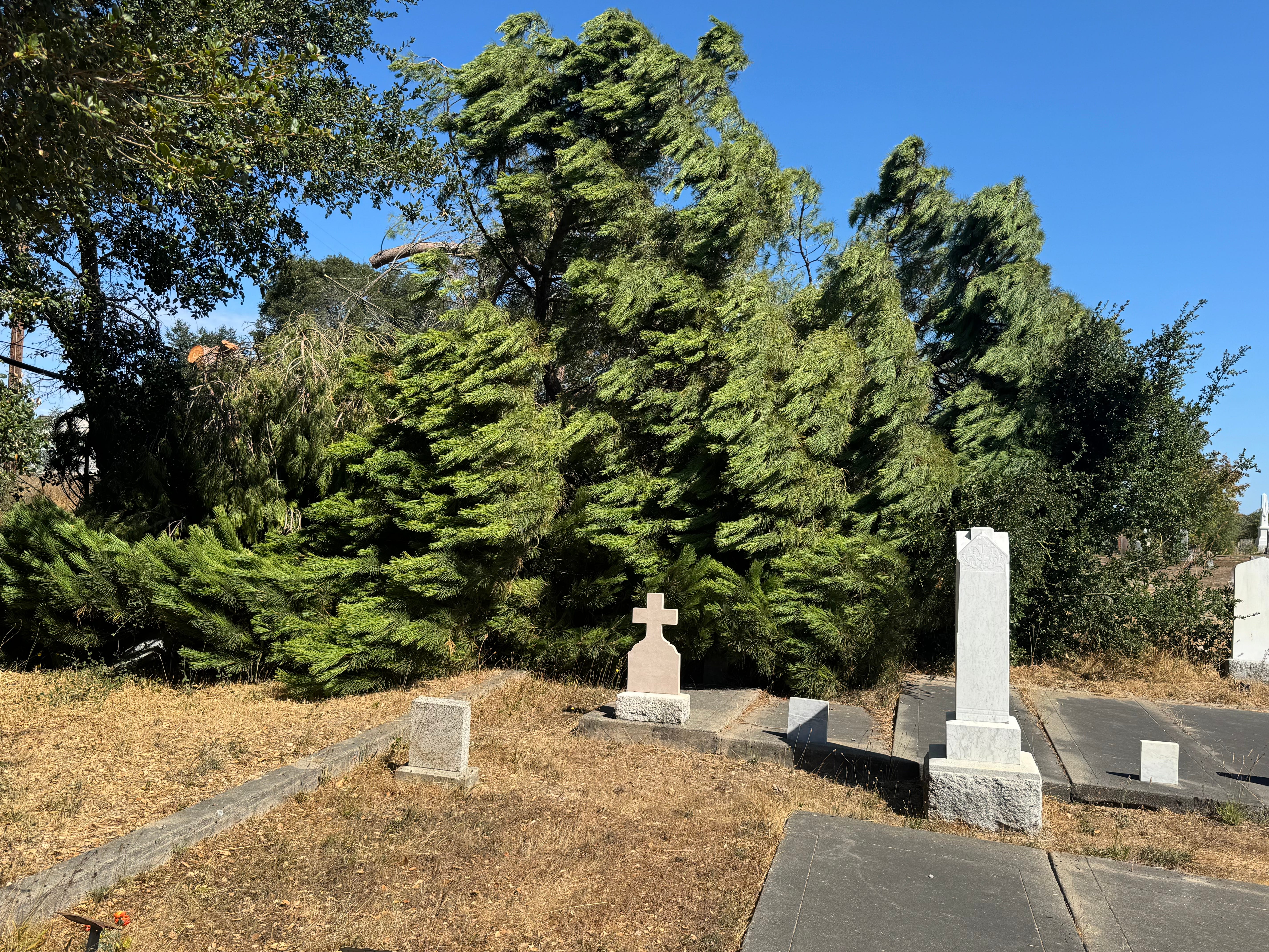 I’m very concerned about all of those dead trees and especially the recent one that fell at the corner of the Sebastopol lawn cemetery. I made a call to Steve Lang the property owner of Sebastopol Lawn Cemetery, LLC and I have not received a call back. Many of us who live about 100 feet from this area are we’re very concerned. This dead wood has been there for months. Now the latest tree that fell has created a larger hazard zone. I spoke to the Sebastopol Fire Department one afternoon when their truck was parked nearby. They informed me they did their due diligence in contacting the owner some time ago who allegedly refused to respond. I’m interested to know what the course of action is.