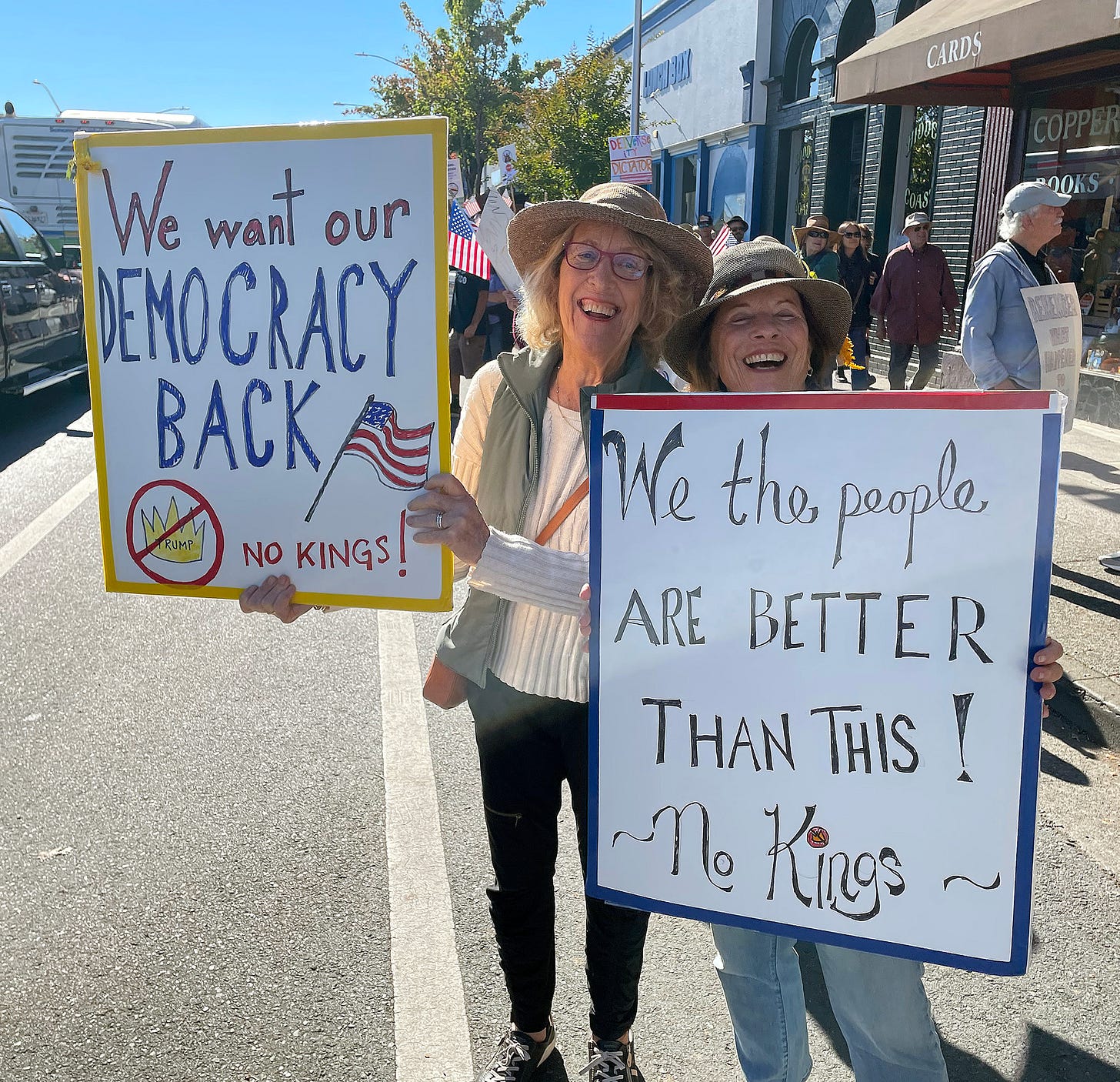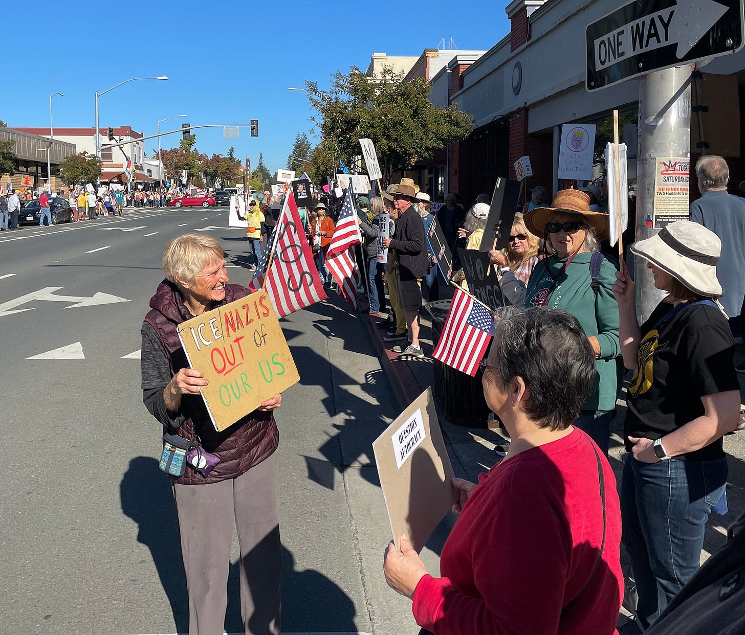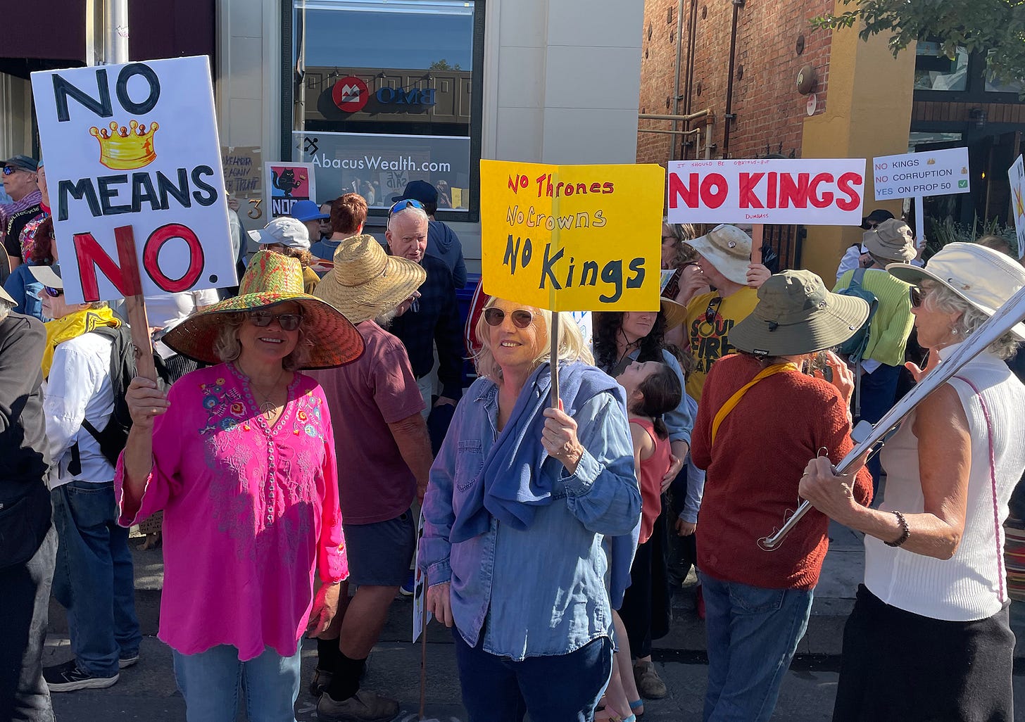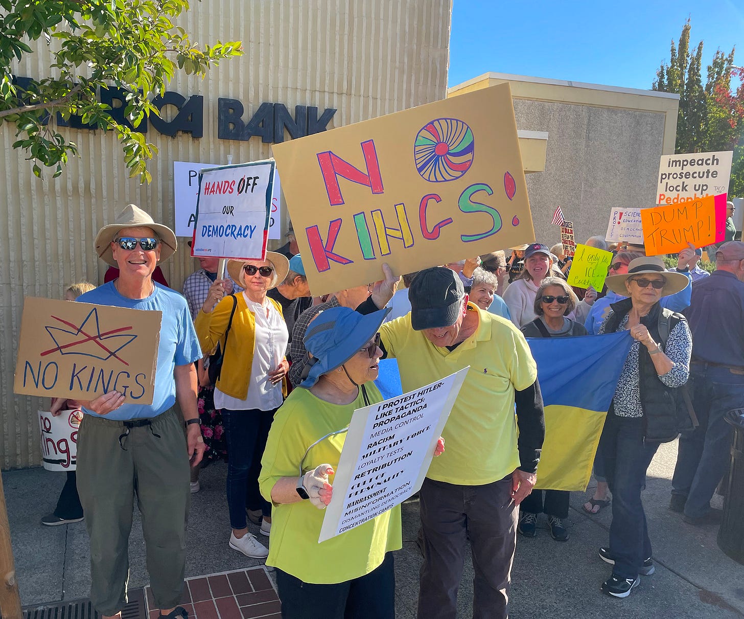 Roughly 1,100 people showed up for the No Kings protest in downtown Sebastopol on Saturday, Oct. 18. (Thanks to Robert Uleman for the count!) This protest was part of the national “No Kings: National Day of Defiance.” Here are a few pics from the day: