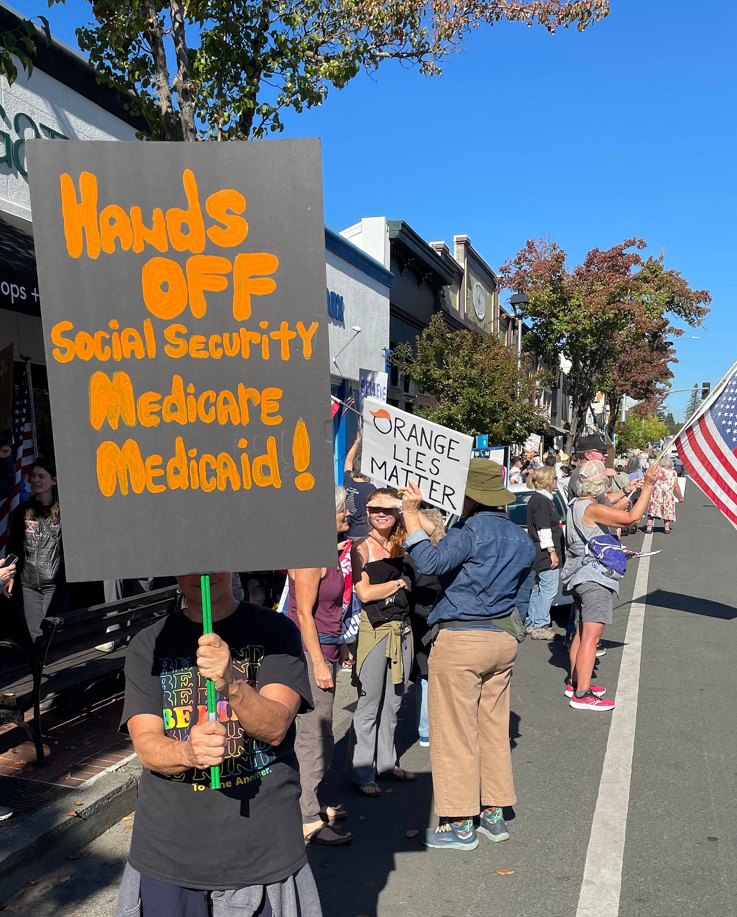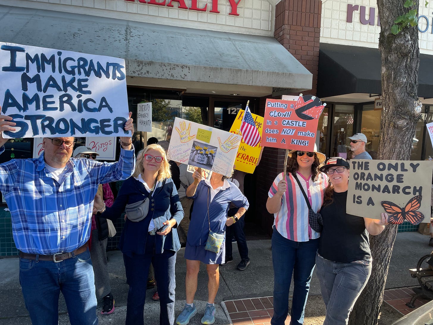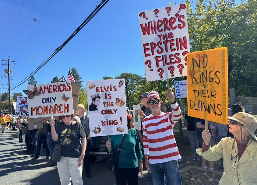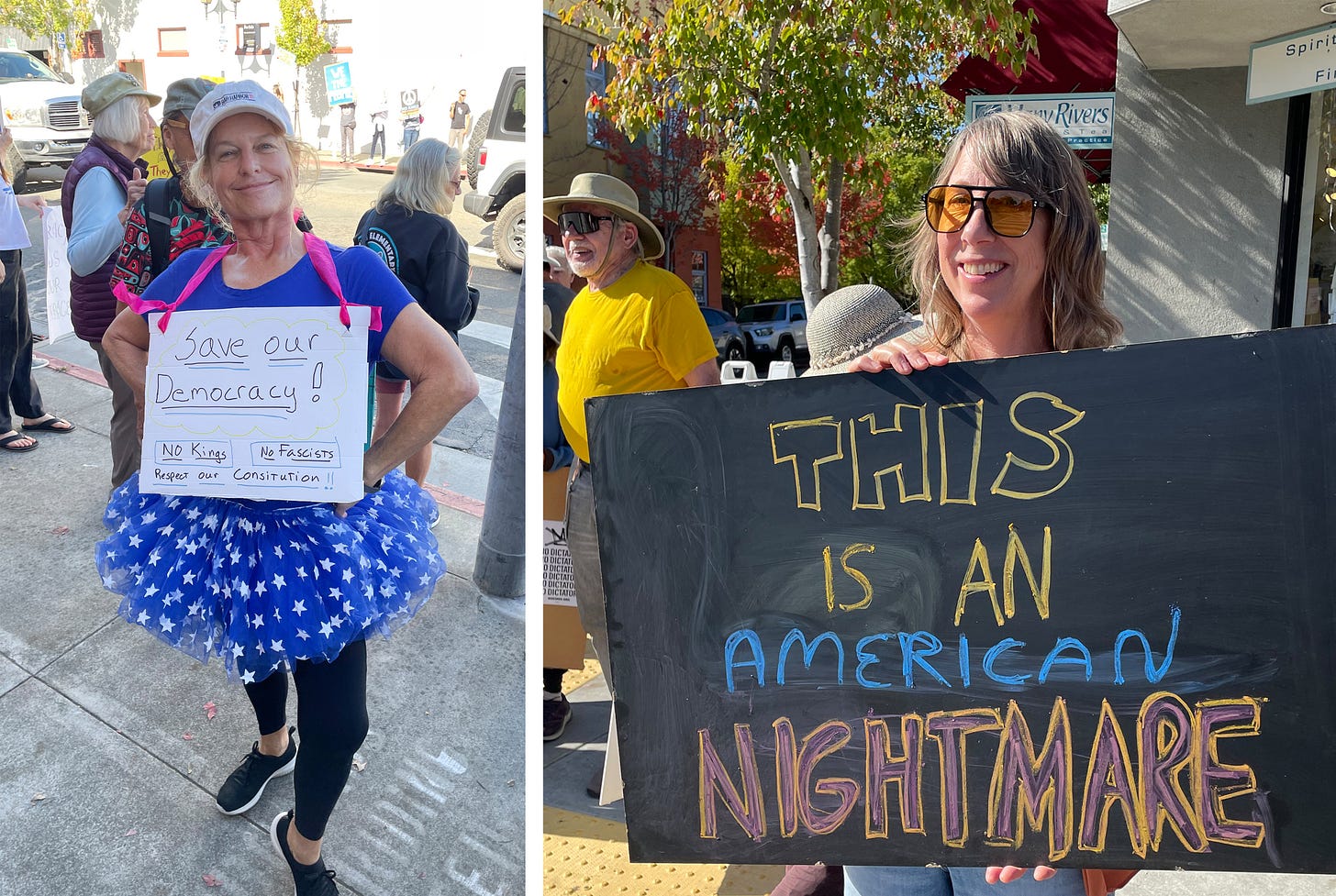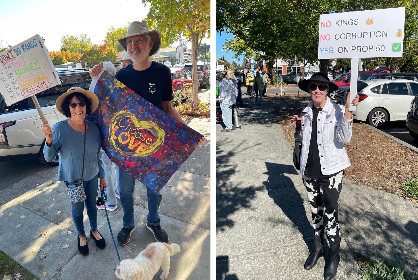 Roughly 1,100 people showed up for the No Kings protest in downtown Sebastopol on Saturday, Oct. 18. (Thanks to Robert Uleman for the count!) This protest was part of the national “No Kings: National Day of Defiance.” Here are a few pics from the day: