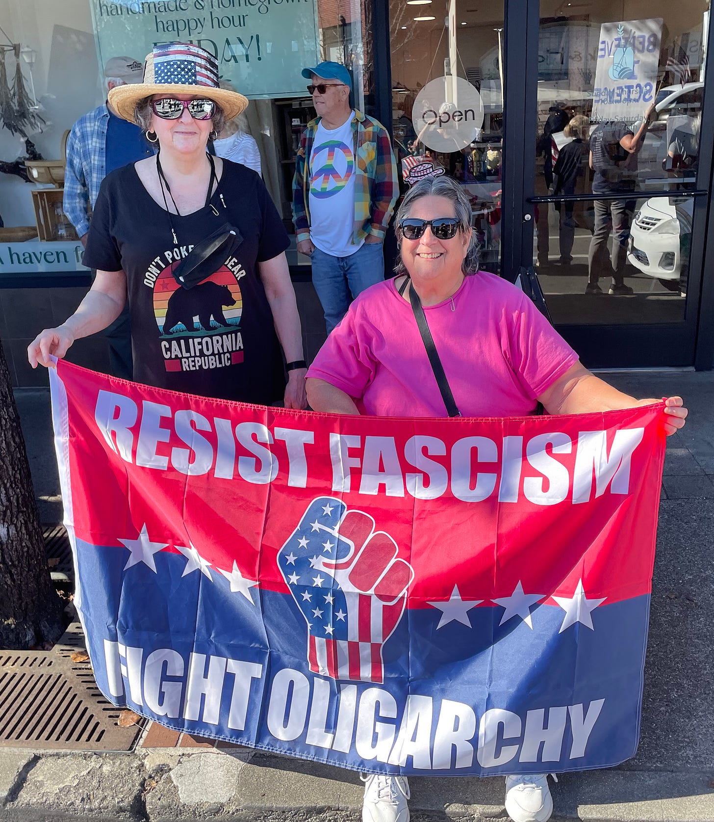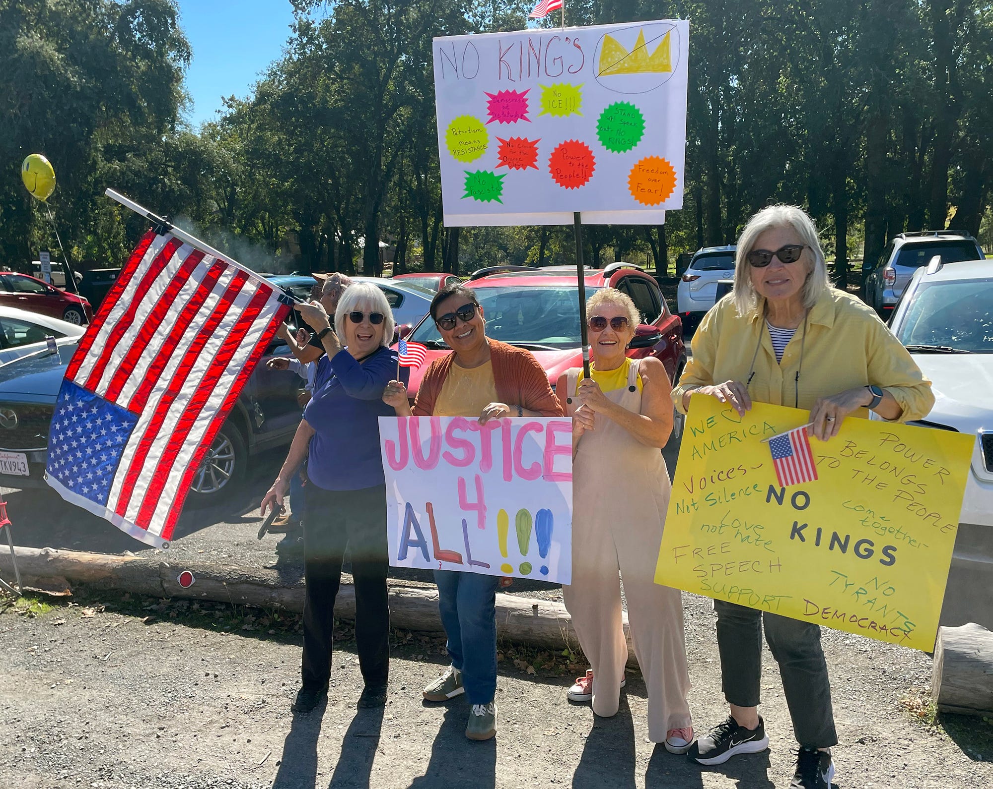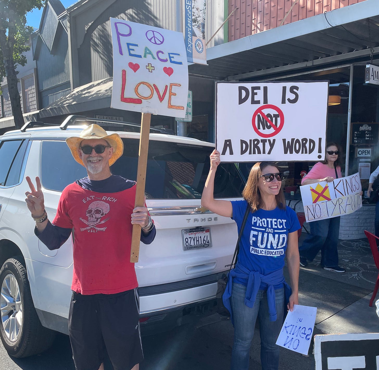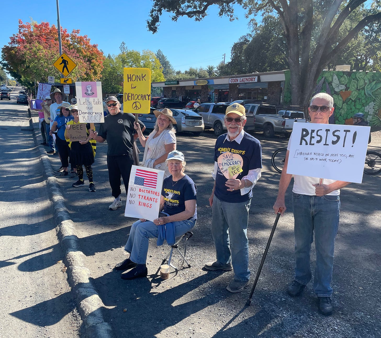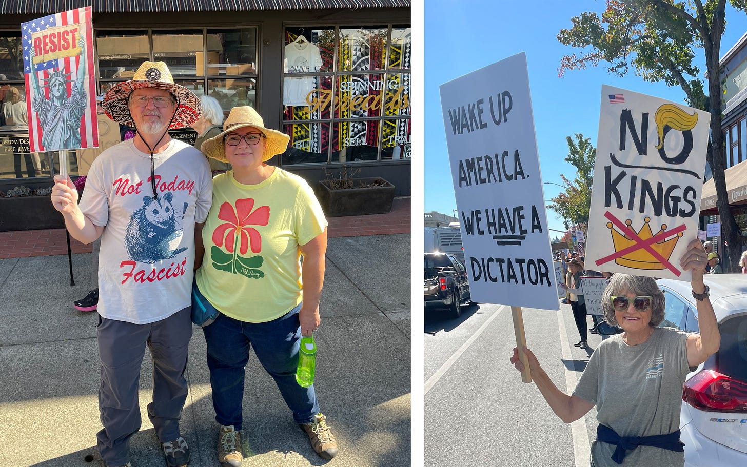Roughly 1,100 people showed up for the No Kings protest in downtown Sebastopol on Saturday, Oct. 18. (Thanks to Robert Uleman for the count!) This protest was part of the national “No Kings: National Day of Defiance.” Here are a few pics from the day: