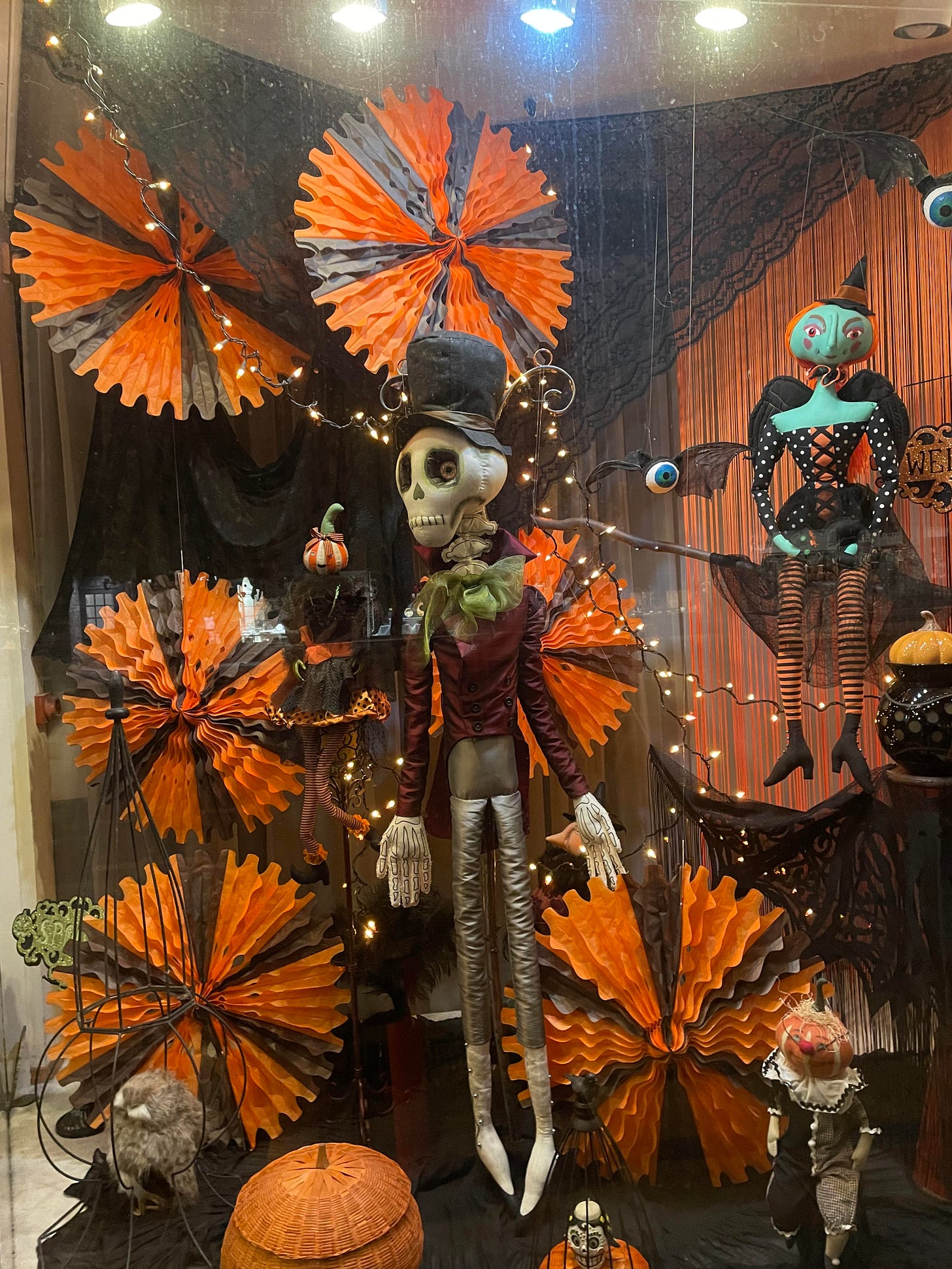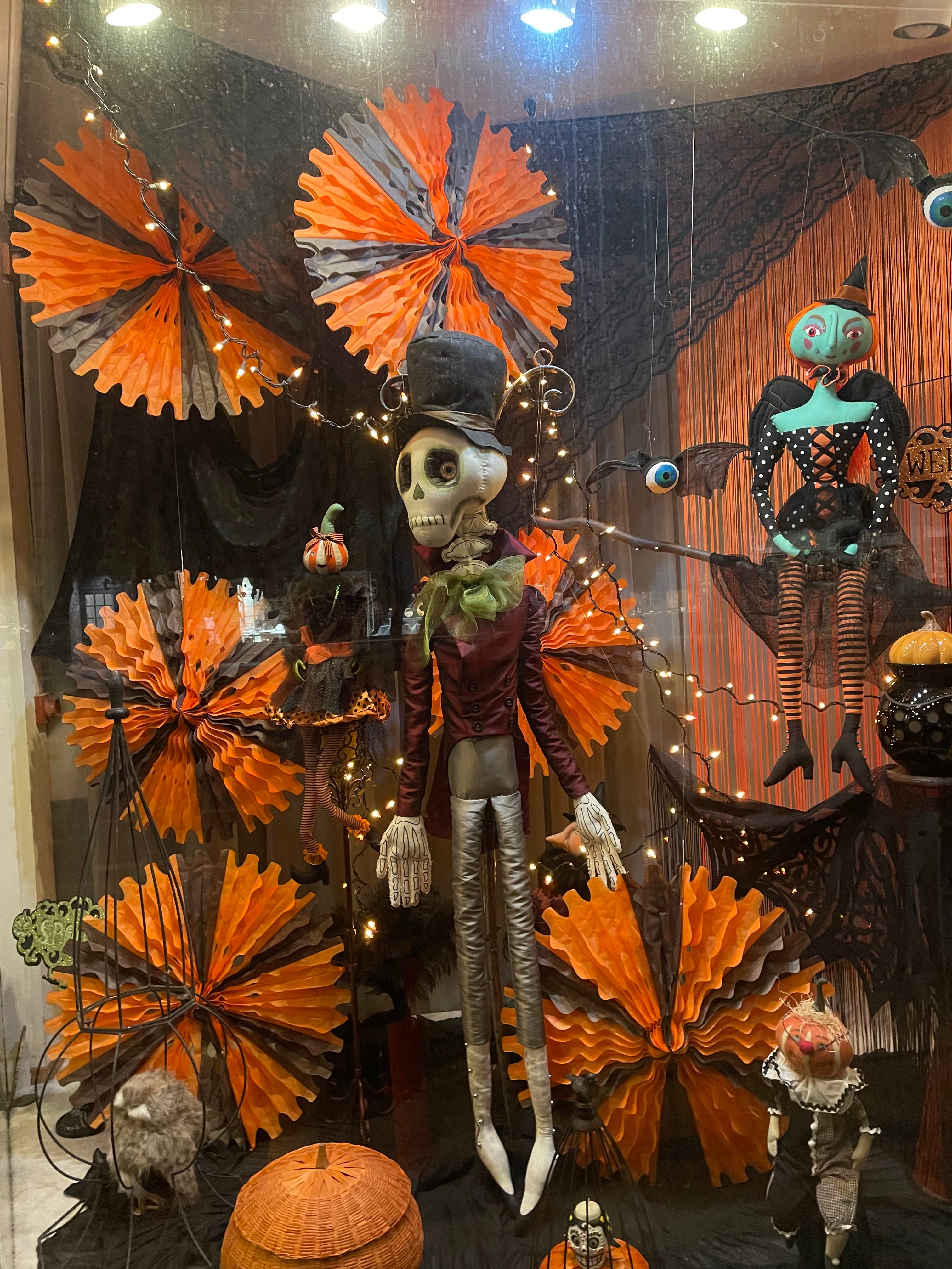The countdown to Halloween has begun, but it’s going to be hard to beat the window display, above, at Pine Grove General Store on Main Street.