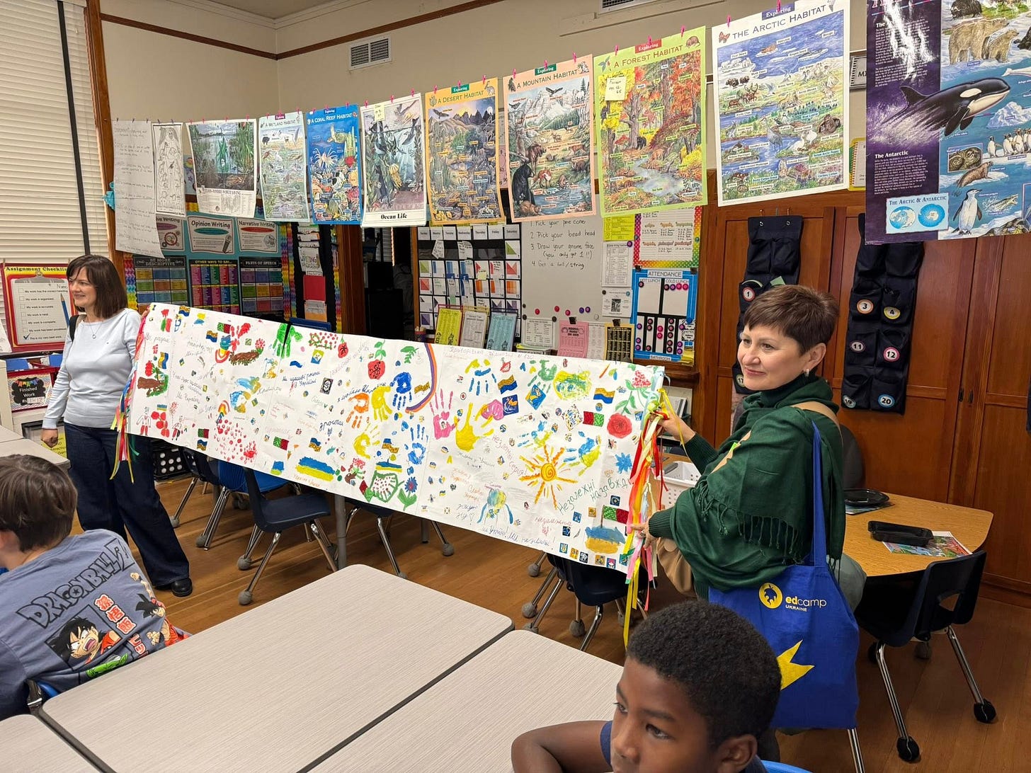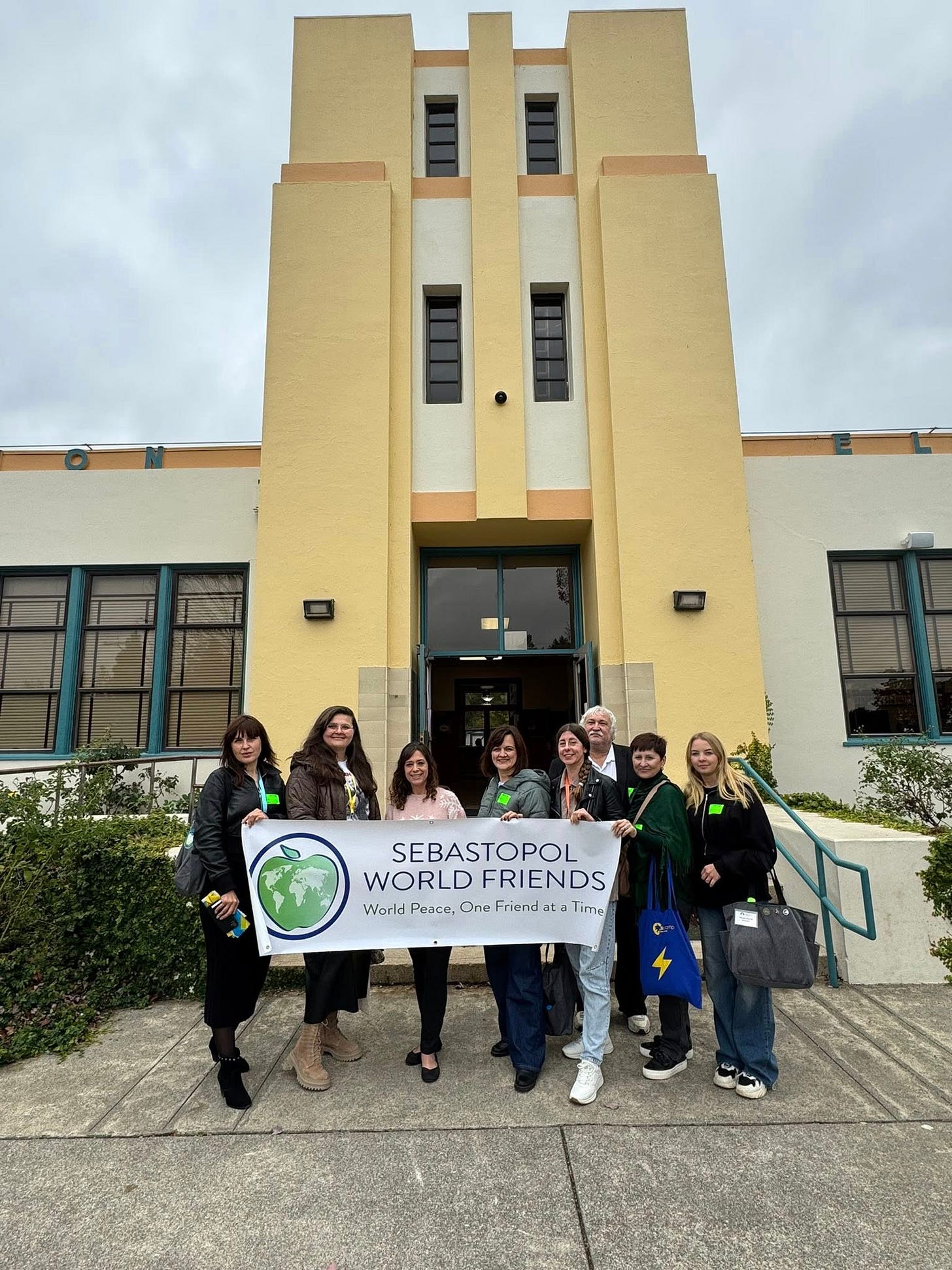 During their two-week stay, they are visiting local social service agencies, like TLC and the Sebastopol Area Senior Center, and schools, including Park Side School, where they displayed this beautiful banner made by schoolchildren in Ukraine.
