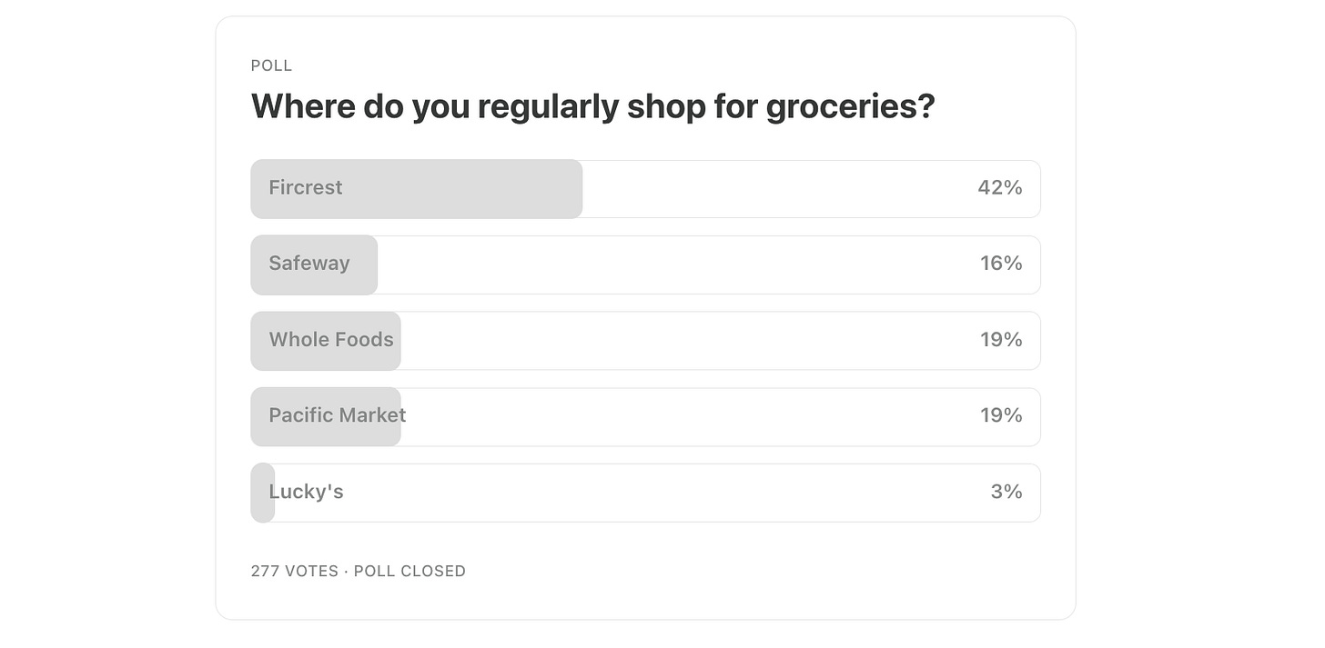 The Sebastopoll of two weeks ago asked about your favorite grocery store. We had 277 readers take the poll with the Fircrest getting the most votes.