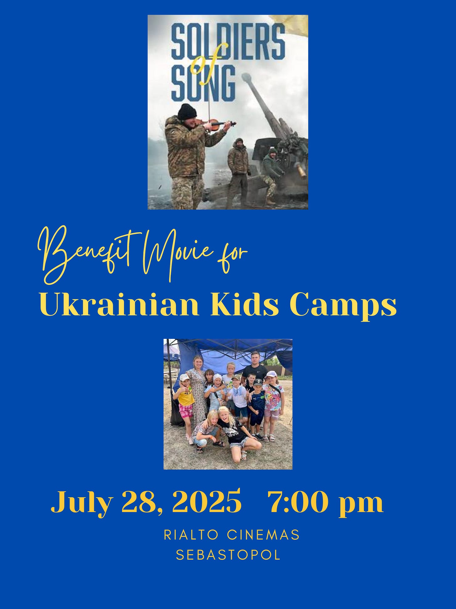 John is organizing a benefit showing of Soldiers of Song, a powerful "independent documentary film about Ukrainian musicians inspiring unity and courage amidst the chaos of war." The film will be shown on Monday, July 28, at 7 pm at the Rialto Cinemas in Sebastopol.