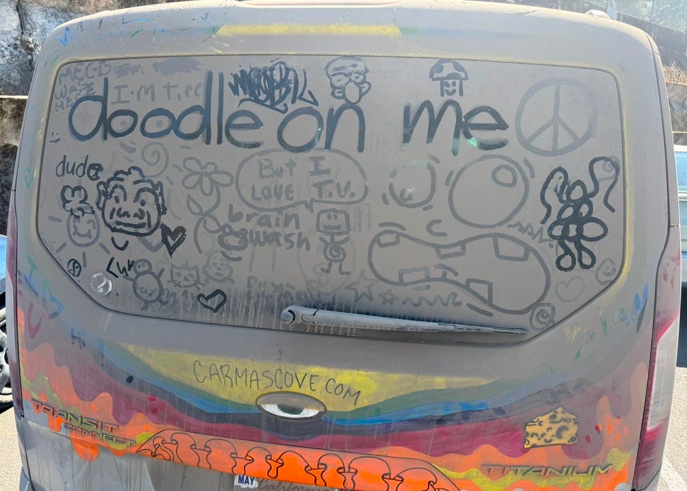 Outside SebArts, there was a brightly painted fan that offered an opportunity to doodle in dust.