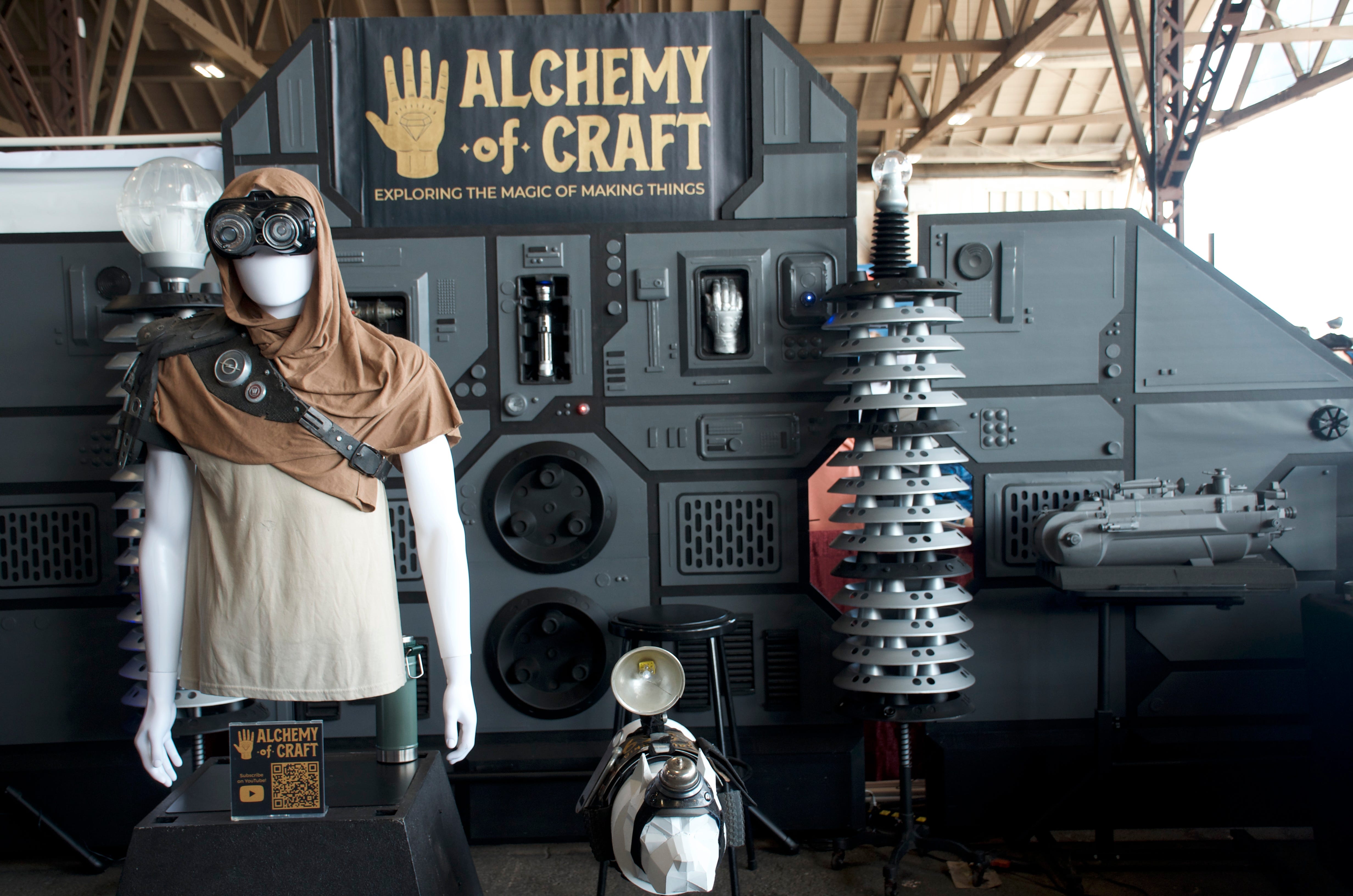 You could feel the joy, creative energy and kindness that were generated by this community coming together. Loren Crotty of Sebastopol brought “Flash the Tortoise” (seen in the video below). His neighbor in downtown Sebastopol is Thomas James, who brought his Alchemy of Craft exhibit to promote his YouTube channel. Also from the Sebastopol area were Kayte Sabicer, a maker of props for movies, who gave a talk on “Making with(out) Intention,” as well as Michael Dickinson of Dickinson Glass Studio, who demonstrated glassblowing, sometimes under windy conditions.