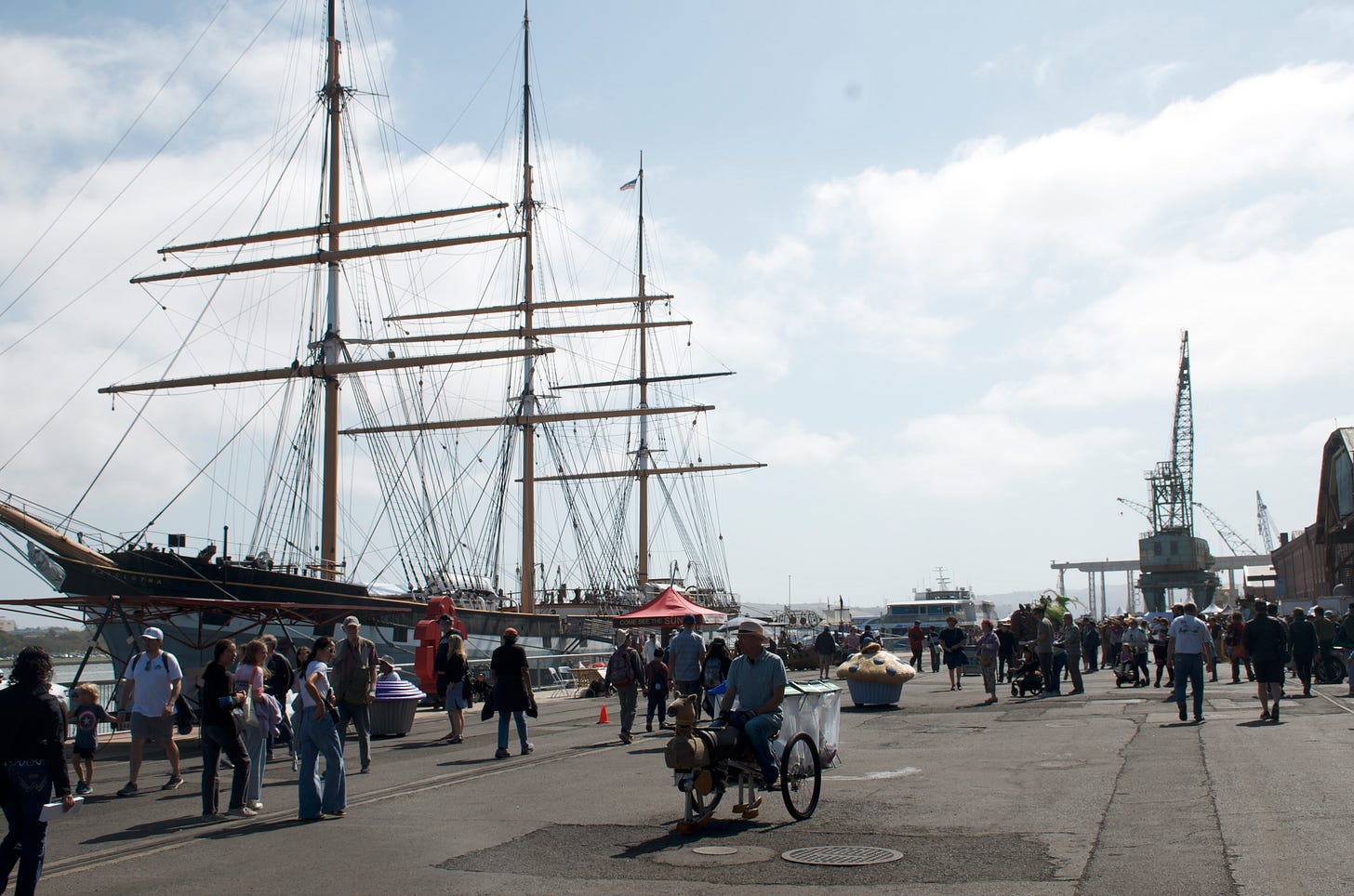 The 17th edition of Maker Faire Bay Area took place last weekend at the Mare Island Historic Naval Shipyard in Vallejo. We had these 19th century schooners on site, courtesy of the National Parks, along with cute electric muffin cars, robots and other mobile makers.