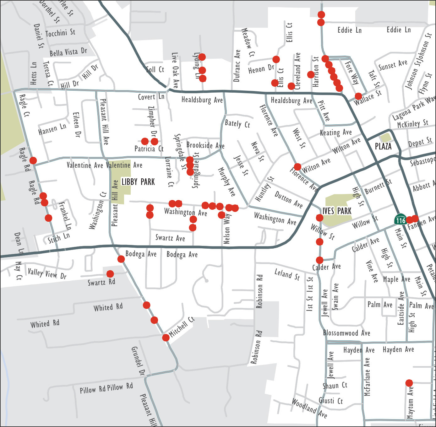 That permanent solution, the city hopes, will come in the form of a grant the city has applied for from the Sonoma County Transportation and Climate Action Authority (SCTCA) for overlays and reconstruction work. According to the staff report, “The grant is highly competitive, and the City will not know whether the grant is awarded until spring/summer this year.”