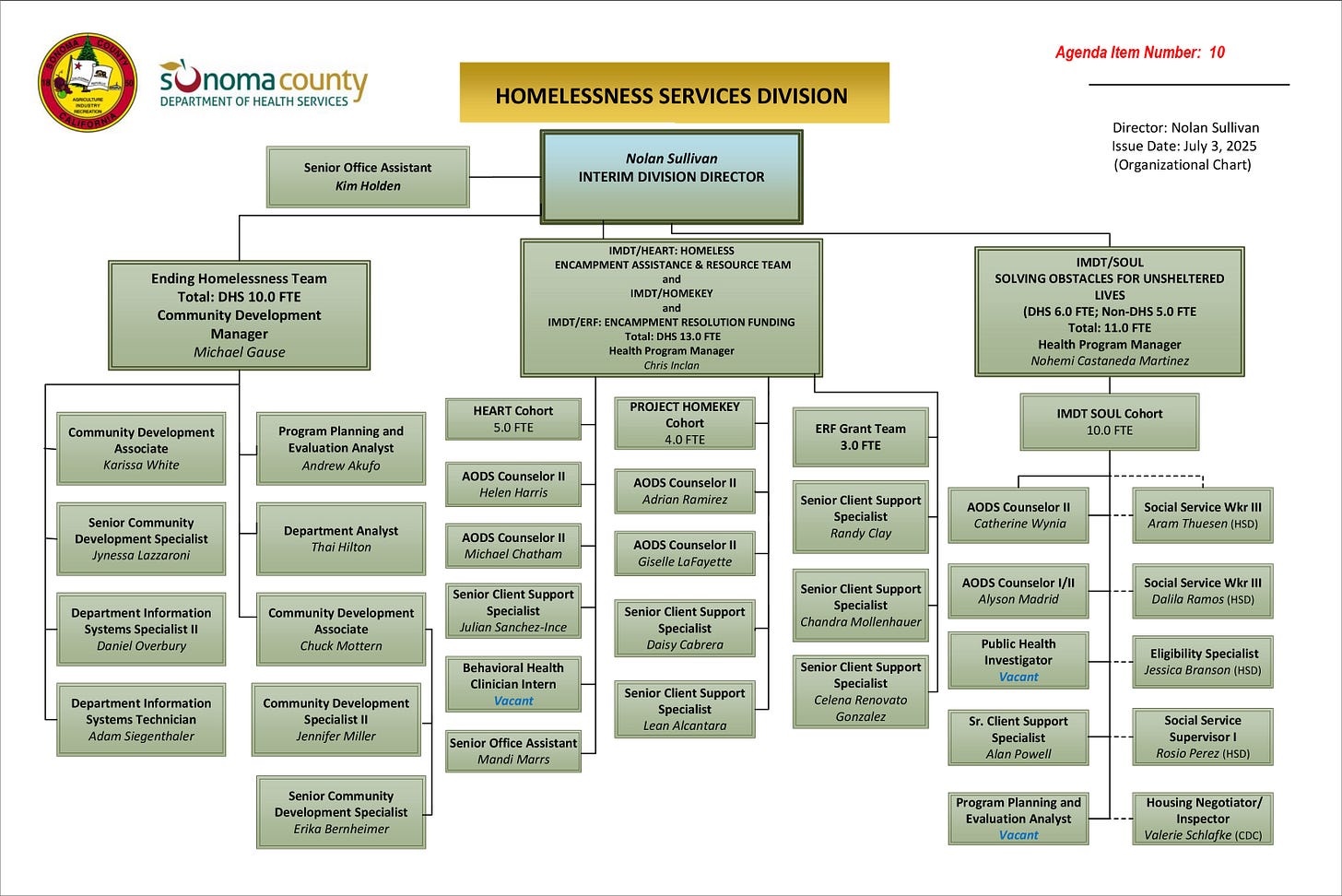 The Sonoma County Department of Health Services has five divisions: Administration; Behavioral Health; Health Policy, Planning & Equity; Homelessness Services; and Public Health. Last week’s presentation dealt only with Homeless Services.