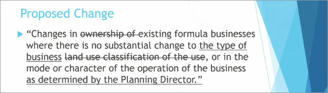 Other speakers in public comment also supported tightening the formula business ordinance.