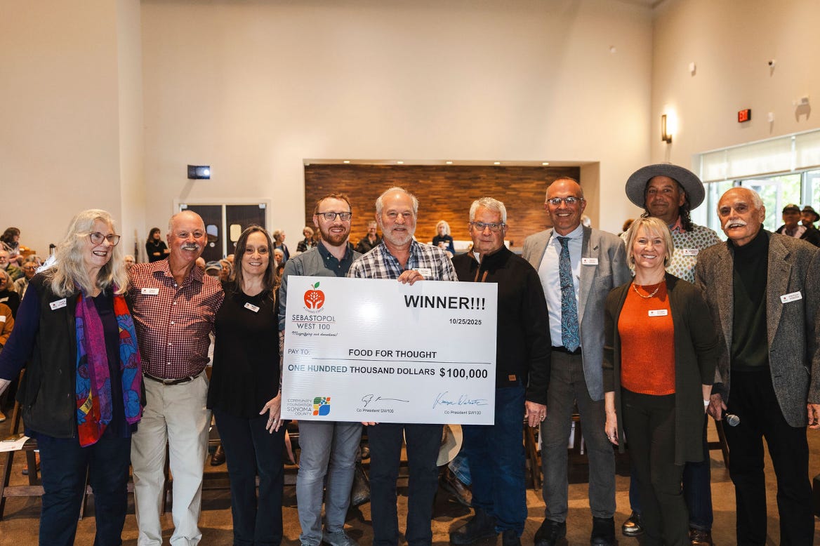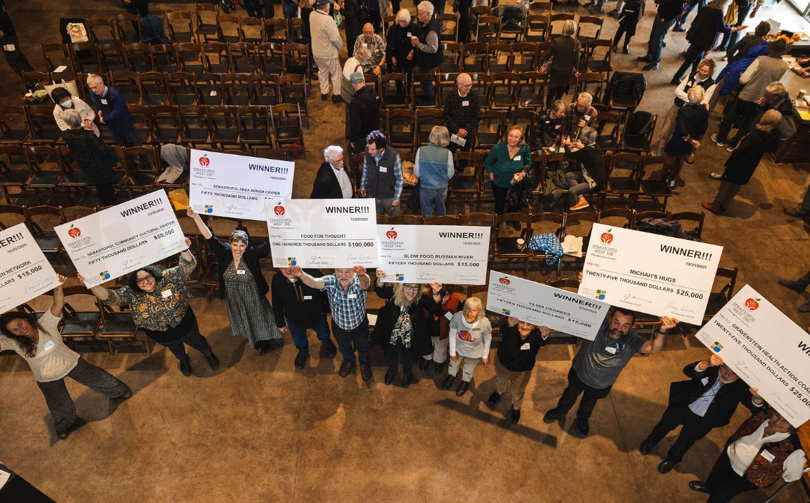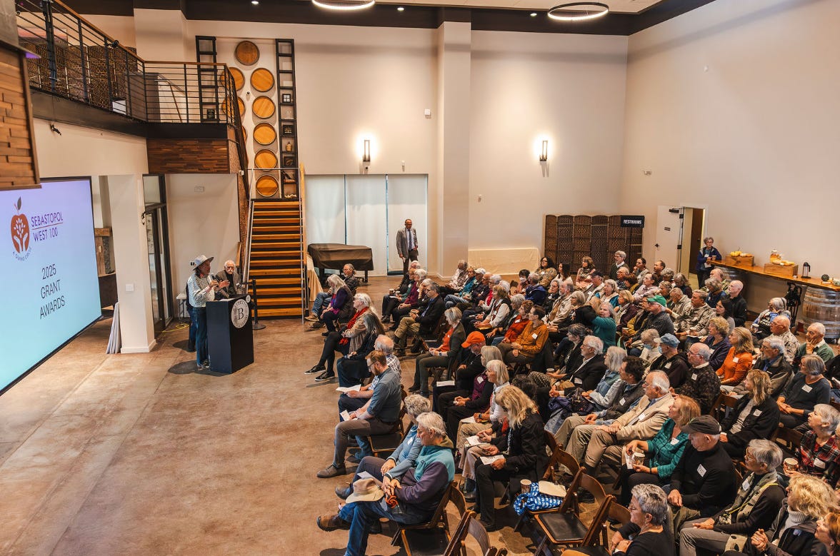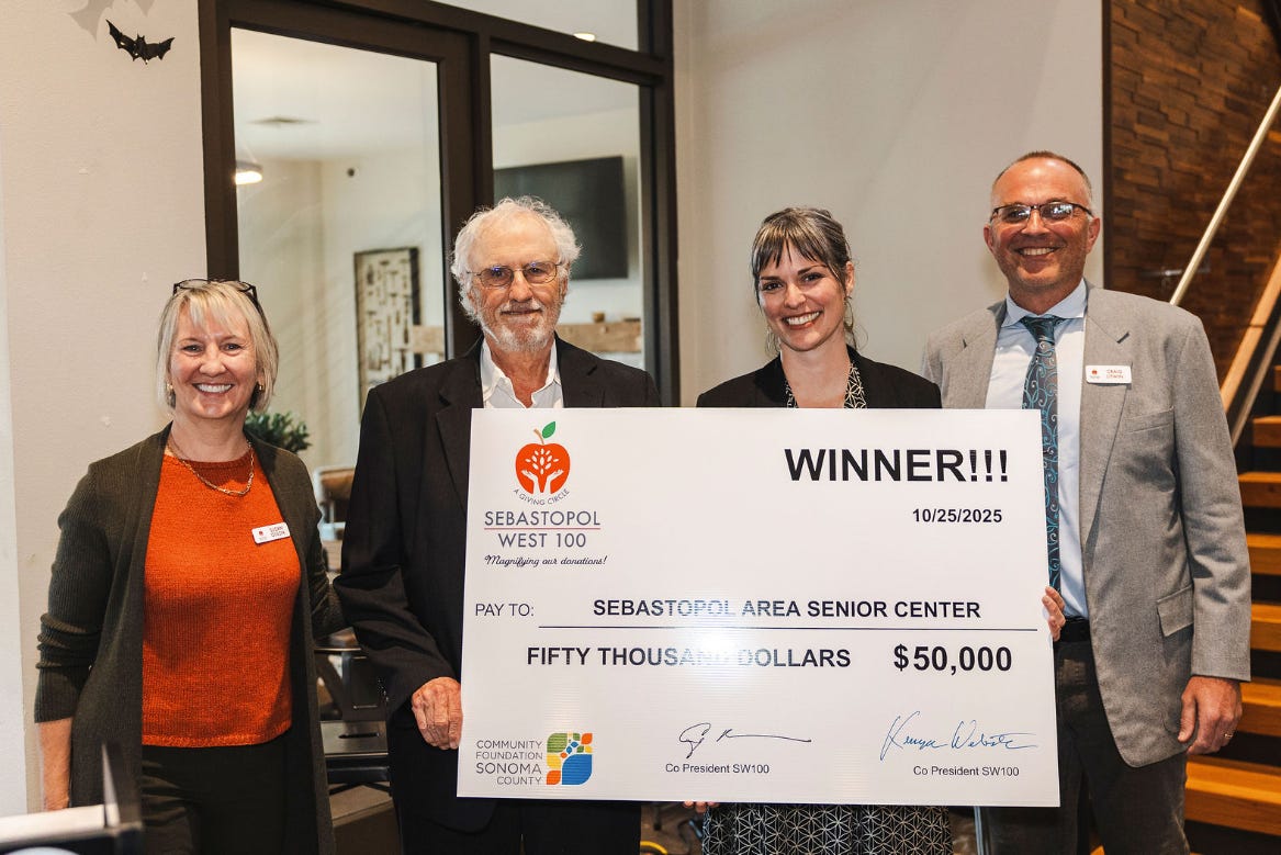 As we explained in our first article on the Sebastopol West 100 back in March, “Annual membership is $1,300, which can be contributed in one payment or spread out monthly. Members will have a direct say in where funds are awarded. Each member will have a vote in the crucial decision-making process of awarding grants.”