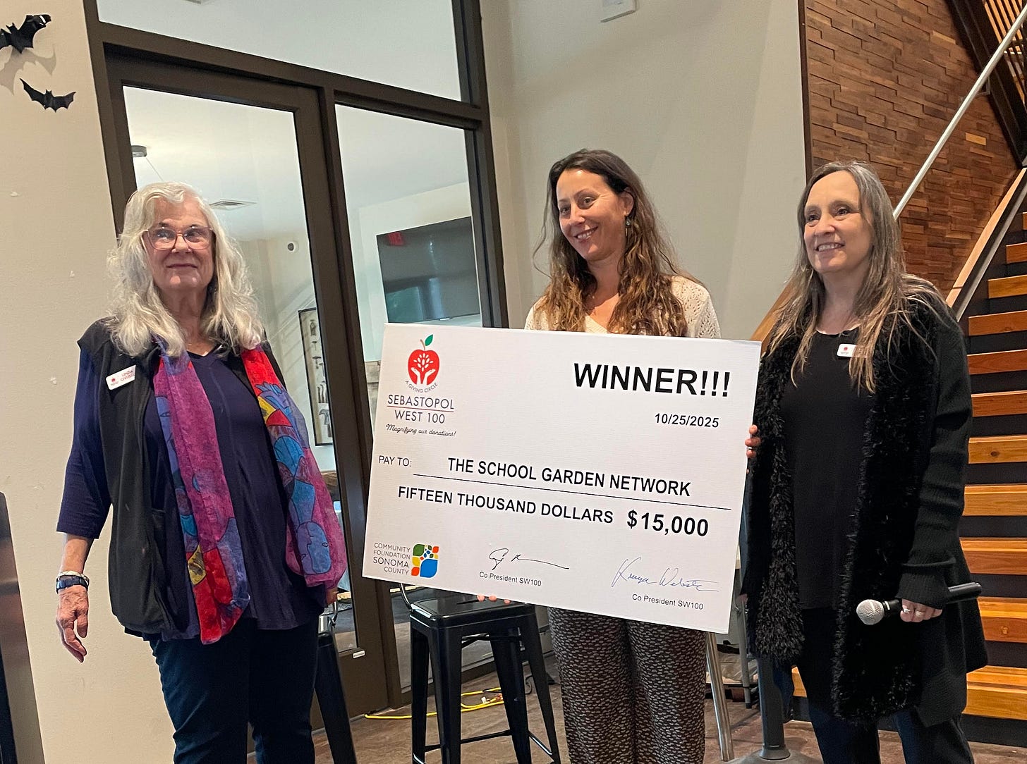 They also listed the runners up—West County Health Centers Inc., Social Good Fund, Inc., Northern California Public Media, Maker Education, LandPaths, Apis Arborea, Emergency Prep Help, and Sebastopol Grange—and urged people to remember them in their end-of-year giving.
