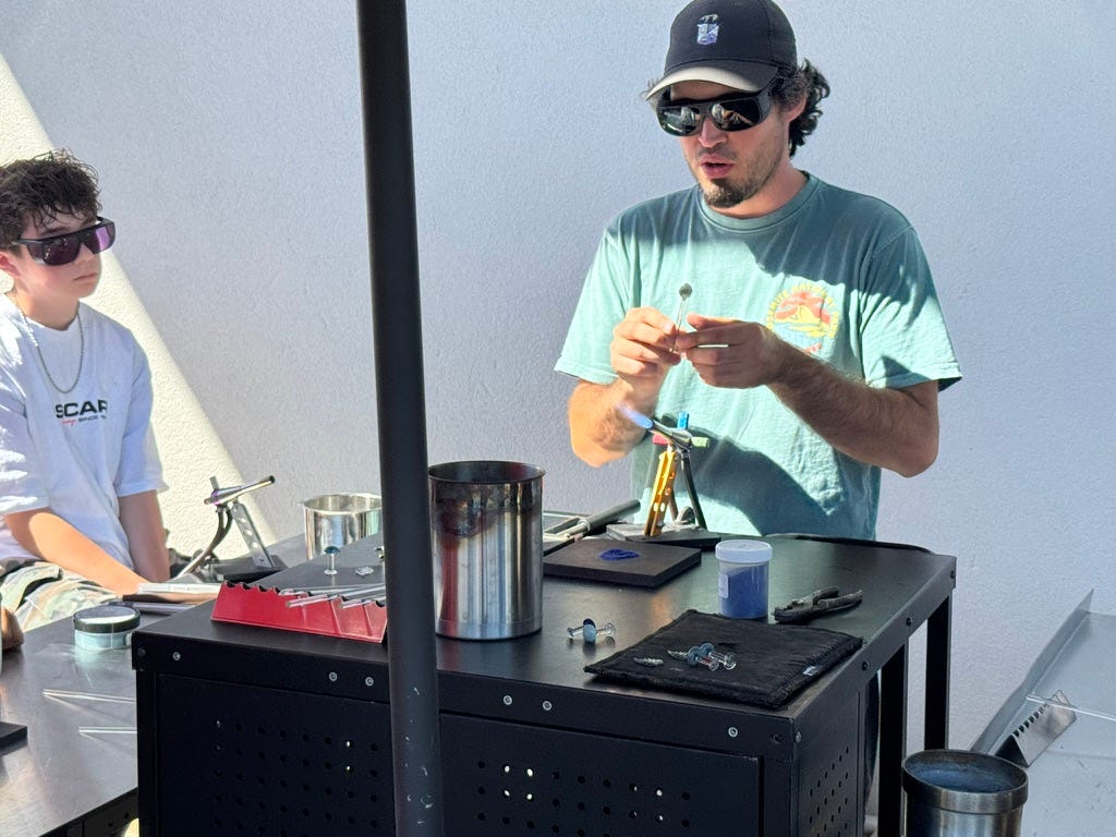 The camp offered four core workshops that all campers did in rotation: blacksmithing, glassblowing, woodworking and 3D fabrication. Each day offered two core workshop that were 2-1/2 hours in length. In addition, there were shorter hands-on activities on the first and last day, as well as elective workshops such as sewing, mosaic tile making, and water marbling. Many campers also chose to do a second session of glassblowing and blacksmithing.