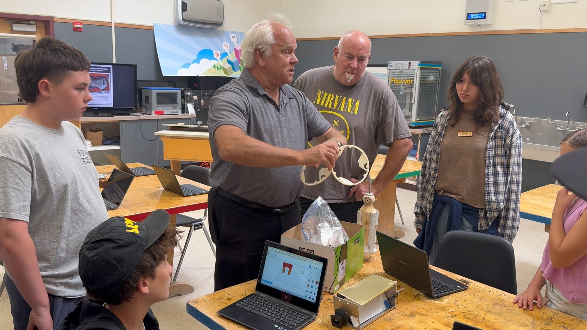Jack Bacon, who is President of Russian River Rotary and a retired engineer from NASA, spoke to the kids about how NASA used 3D printing to prototype an interlocking mechanism that allowed spacecraft to dock with the International Space Station.