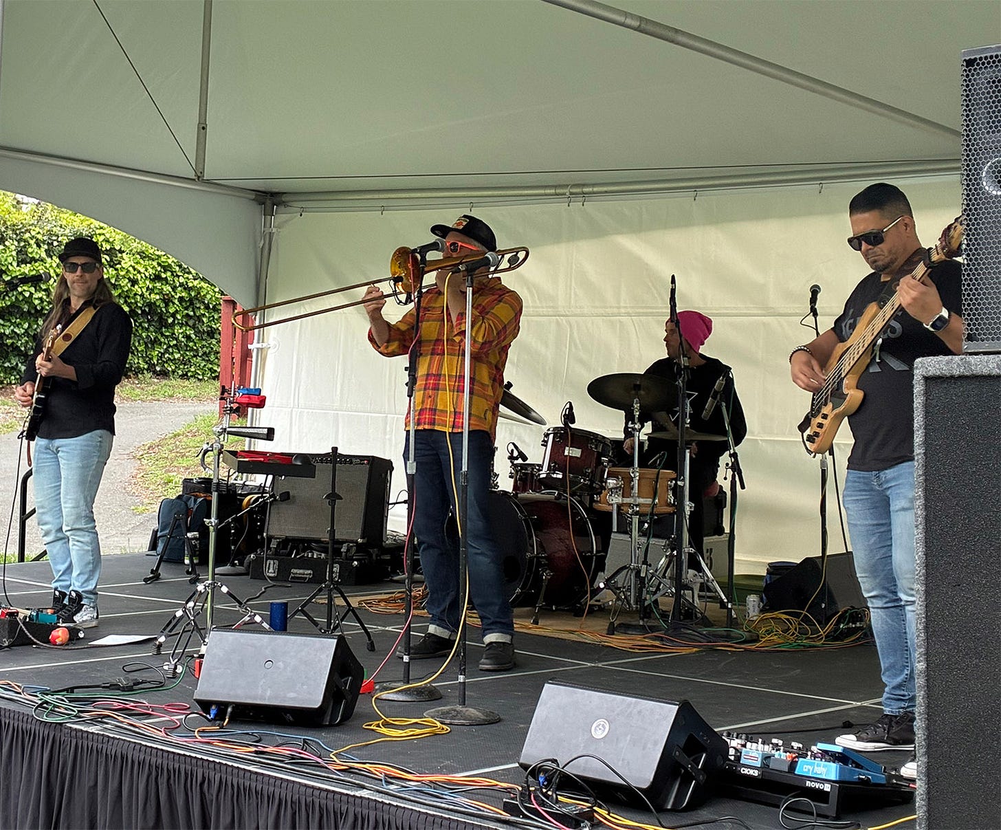 The Apple Blossom Festival continues today with bands on two stages, kid rides, the AWS Art Show, lots of new food options, craftspeople, and, fingers-crossed, a little more sun. Here are today’s musical offerings: