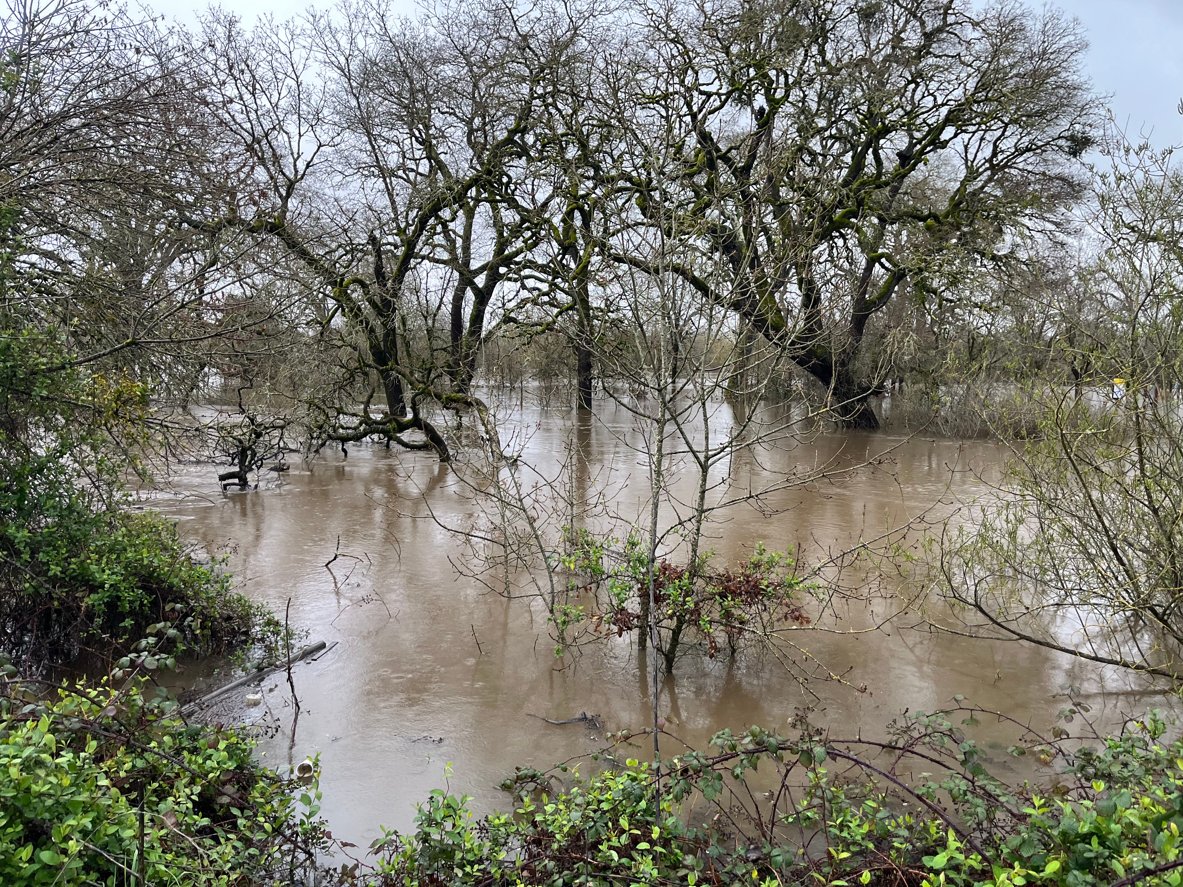 The February storms have flooded the Laguna and the water level is high but not yet as high as the level from last year’s January storms. I took these photos about 1pm today. If you have your own view of the Laguna, please share it with me. (dale.dougherty@gmail.com)
