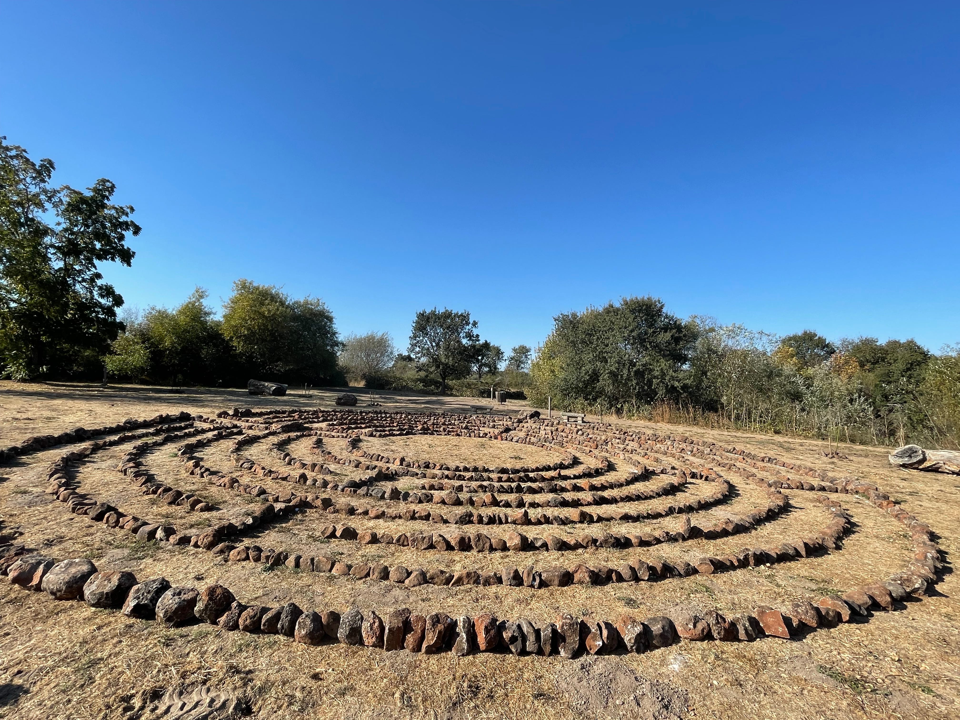 When you reach the back of the baseball field, you’ll see the labyrinth in a field off to your right.