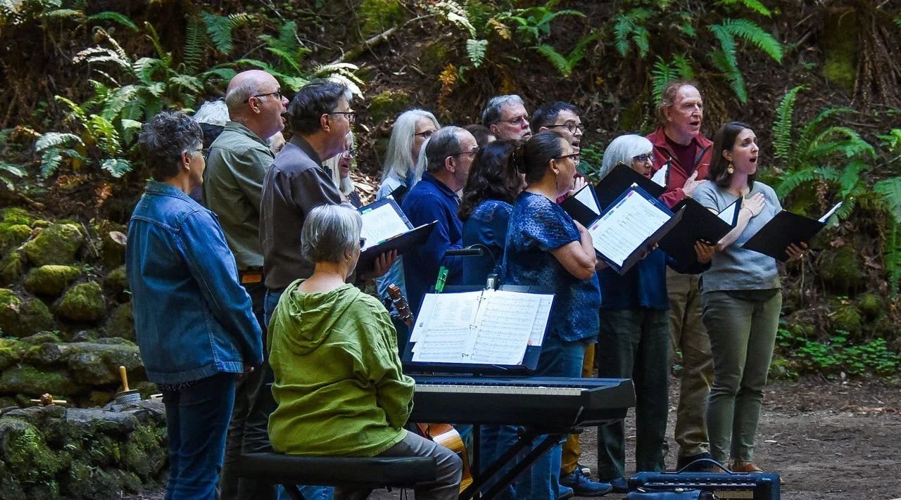 Acorn MusEcology’s singers come from diverse musical backgrounds. At first their ranks were drawn from members of the Occidental Community Chorus, the Kitchen Choir, the Cinnabar Chamber Singers, and Take Jack. Over time, they added singers from Santa Rosa Symphonic Chorus, the Threshold Choir, the Boon Hiker Band, Chimney Full of Birds, and Cantiamo Sonoma, a premier Sonoma County a cappella group.