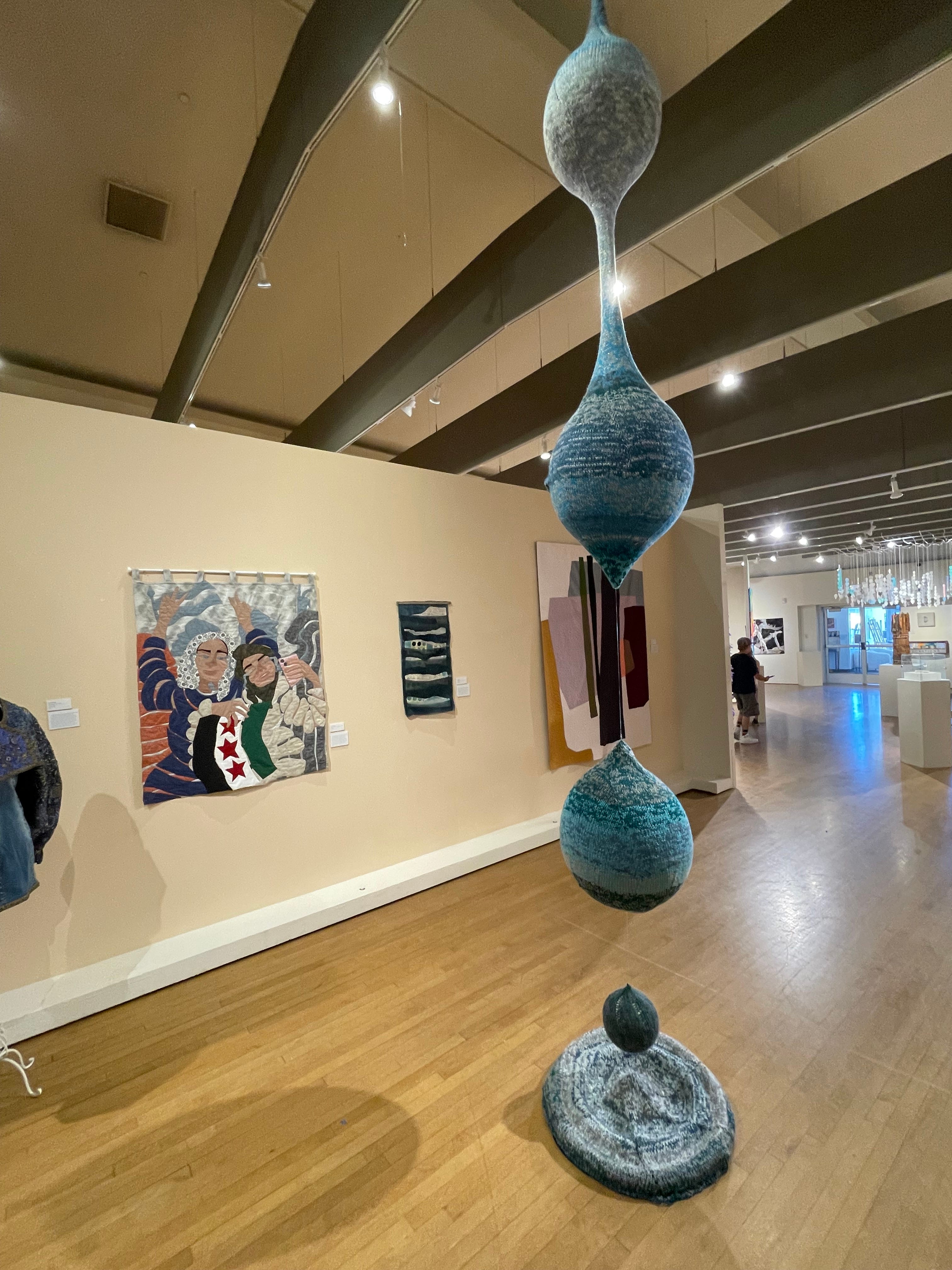 “Yes, there are art quilts and art weaving, but then in addition to that there’s wire, there’s mesh, there’s all kinds of odd fabric, there’s one piece that is woven completely out of zip ties and crochet needles…so it’s really dynamic and very unusual-looking stuff.”